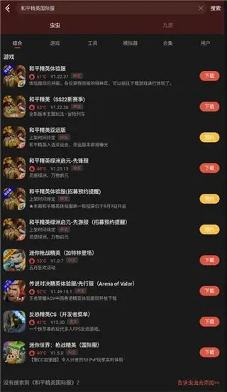 5、像和平精英国际服、体验服、王者荣耀国际服等热门手游都可以在这里下载。