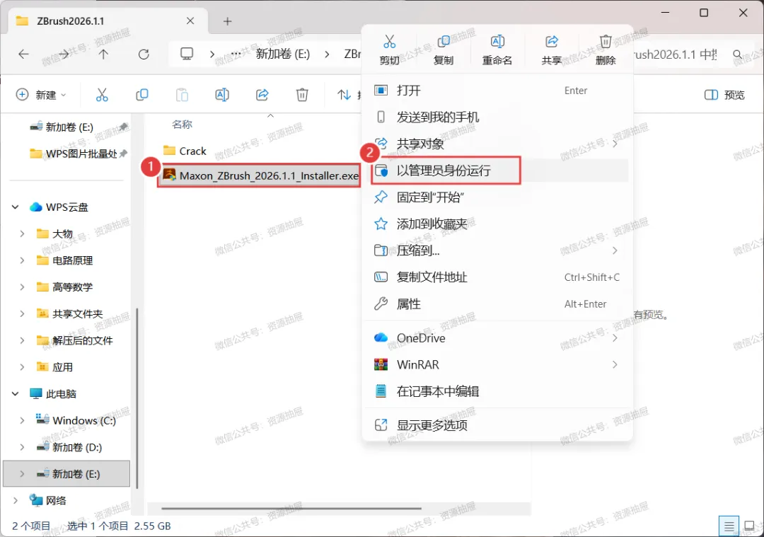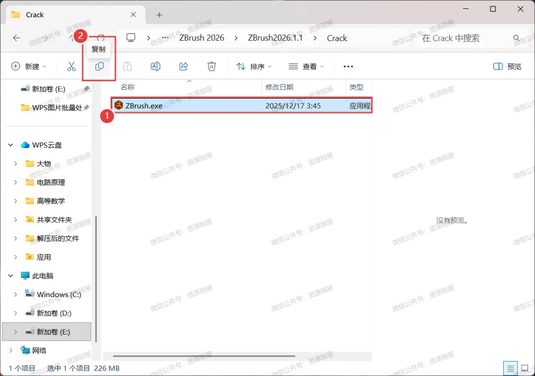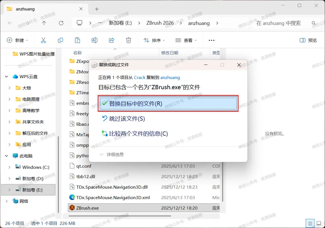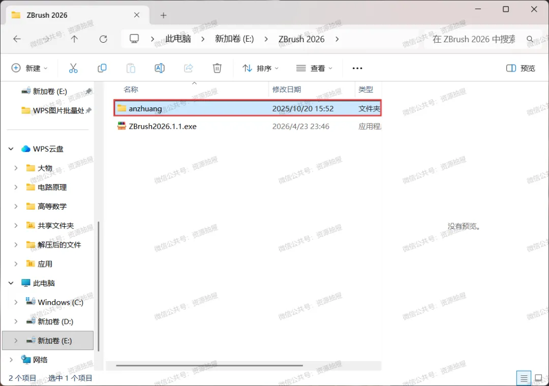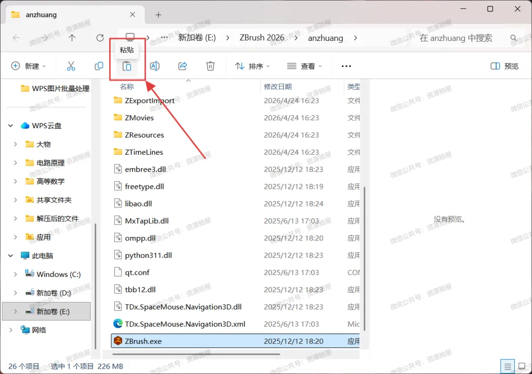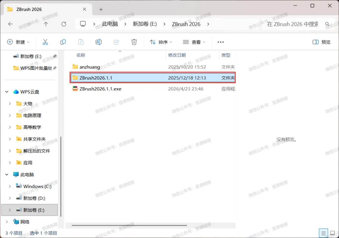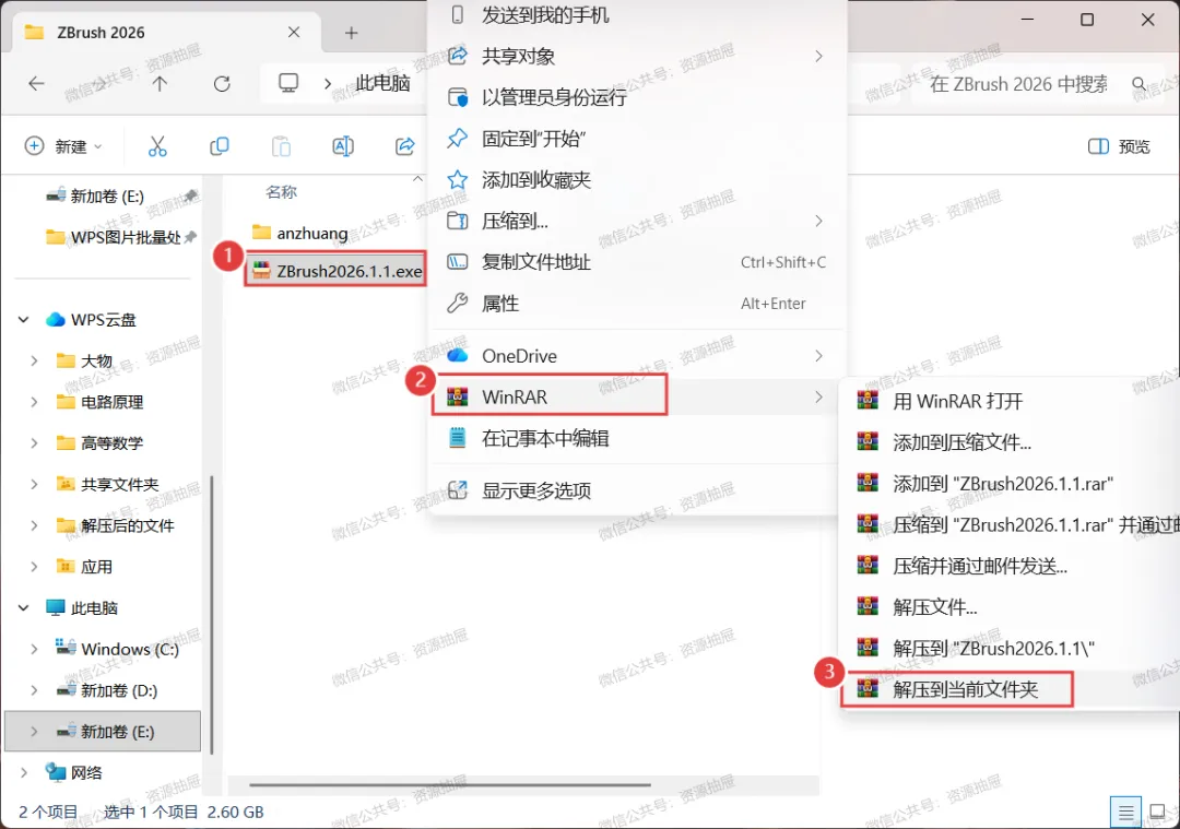 3.将压缩包[ZBrush2026.1.1.exe]解压到当前文件夹
