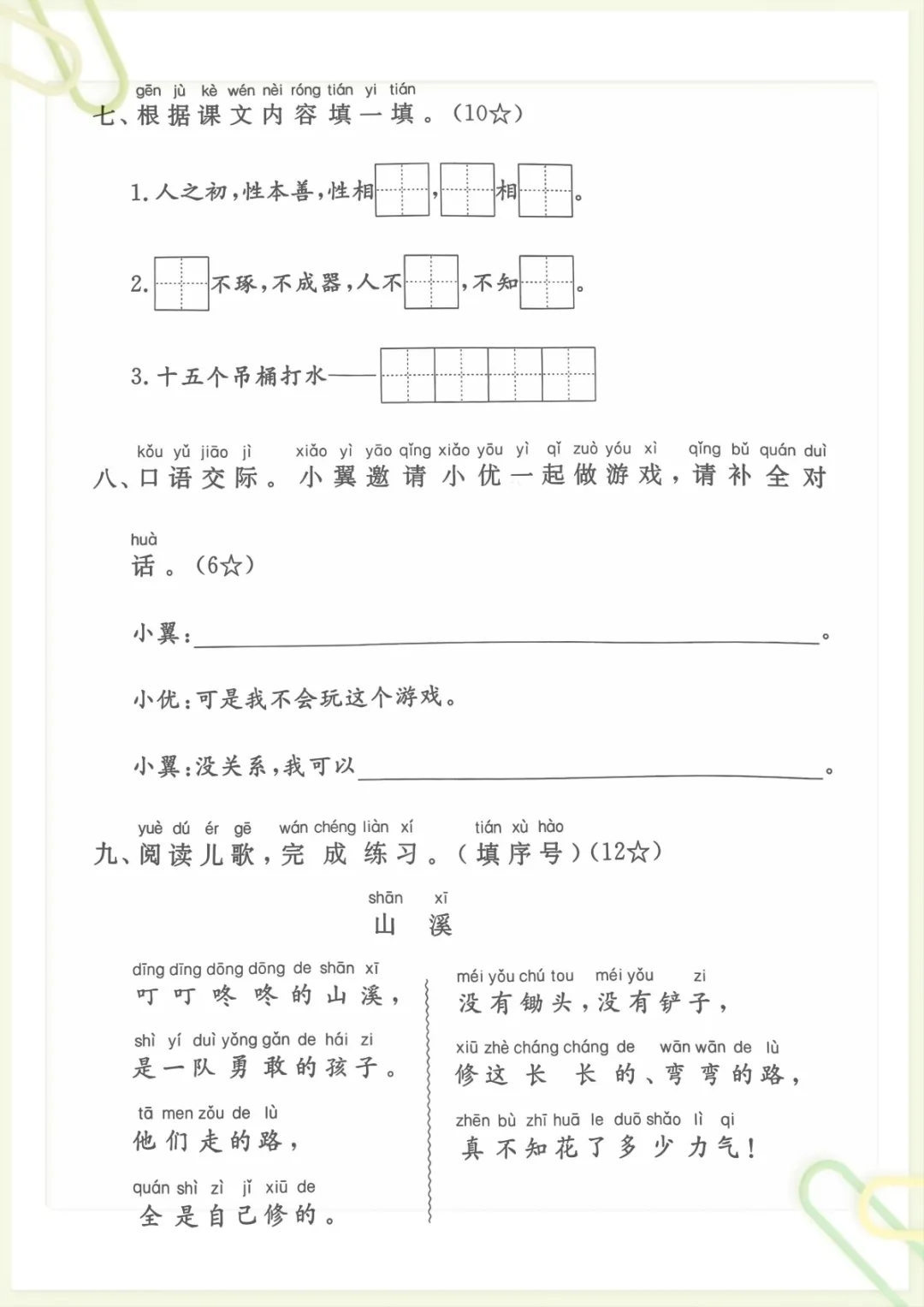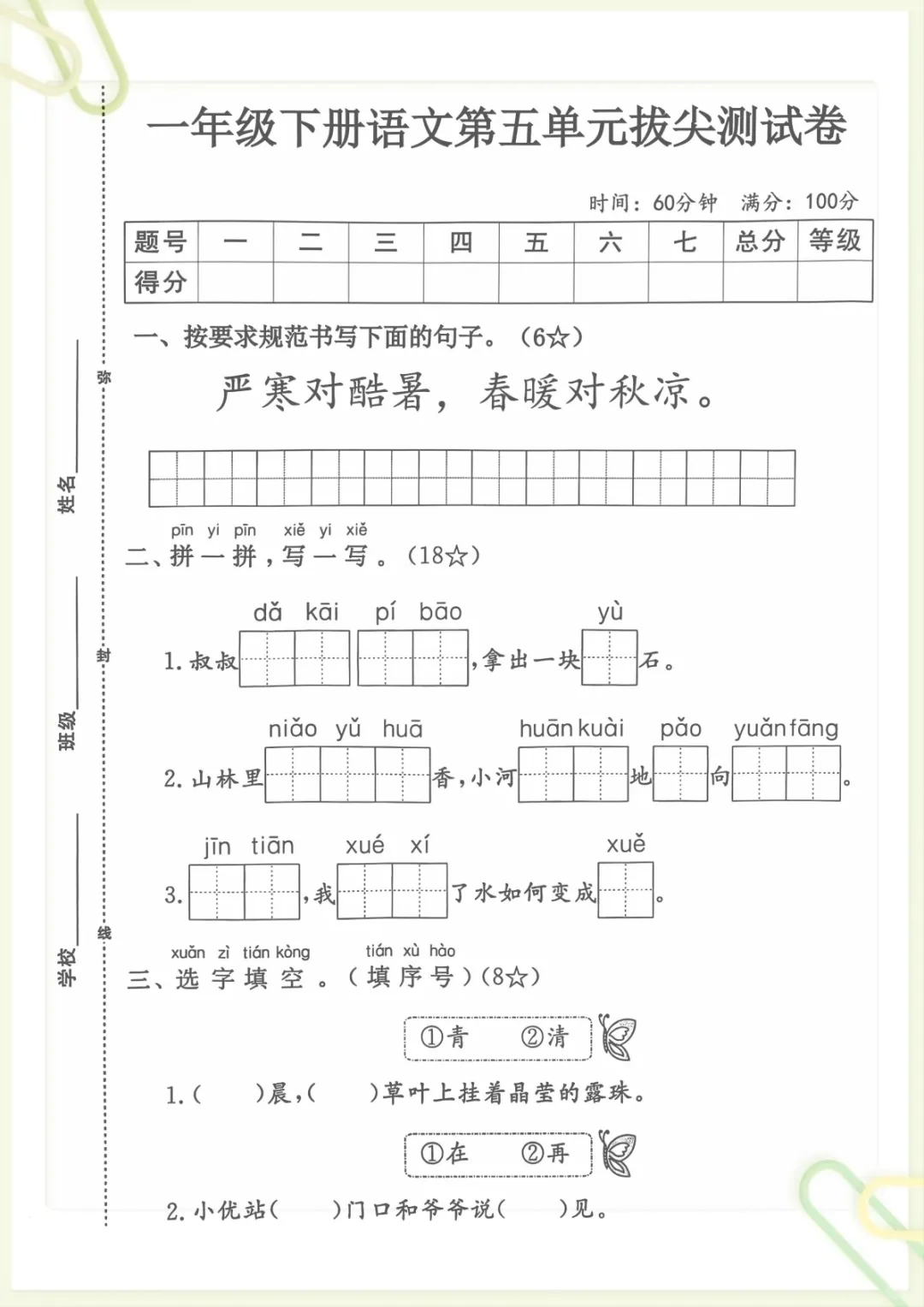 一年级下册语文第五单元测试卷,共5页,电子版可下载可打印,这份资料围绕单元学习内容进行整理训练,涵盖多个核心知识点与专项训练内容,适合孩子在学完本单元后进行巩固自测,及时查漏补缺,帮助家长更清晰地了解孩子对本单元内容的掌握情况。需要的家长可以赶紧保存打印出来,让孩子练一练。