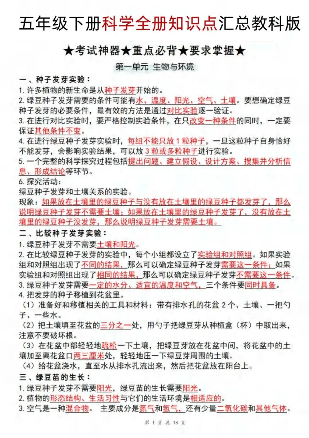 今日分享:想要在科学考试中取得好成绩?这份文档是你的必备神器!涵盖了从种子发芽到生态瓶设计的全方位知识点,让你的学习事半功倍。部分资料展示如下,文末有完整电子版领取方法,欢迎下载和打印。