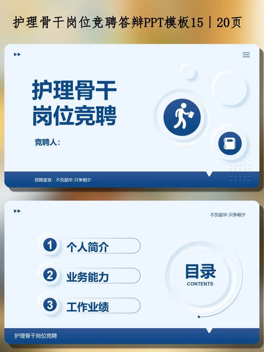竞聘宣言放在显眼位置:「不负韶华·只争朝夕」。做竞聘PPT的同行都懂,开场30秒没抓住评委注意力,后面再精彩也吃亏。