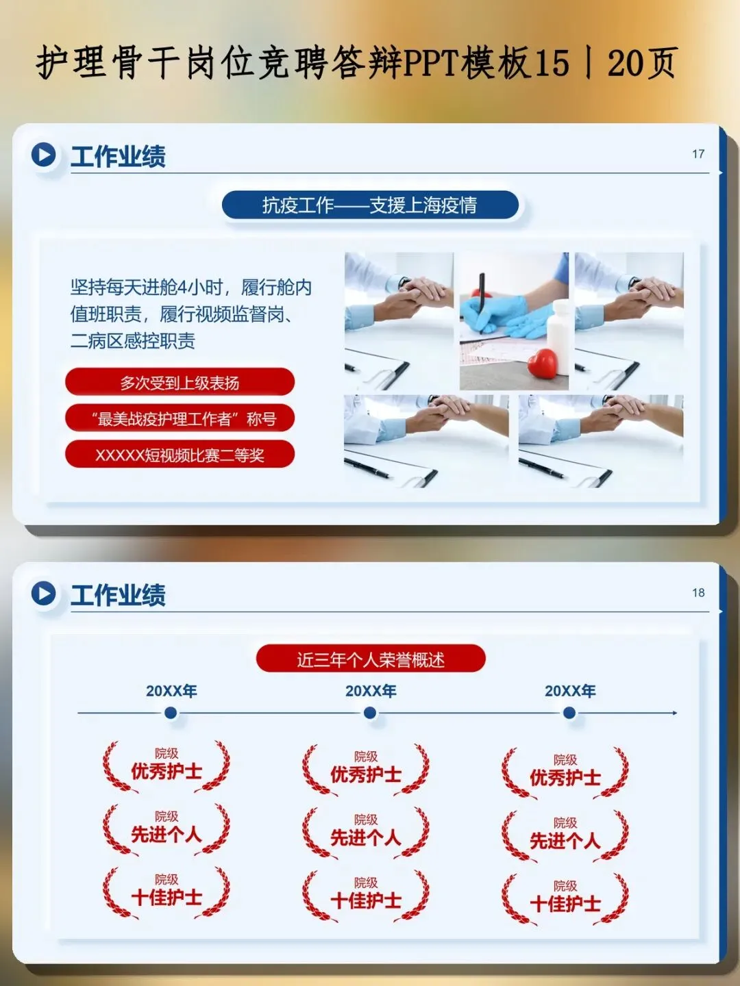 做临床护理的同行都懂,骨干岗位不光看学历论文,更看实干。模板涵盖:积极参与院内小组活动和科室节目组织,坚持每天进舱4小时履行舱内值班职责,承担视频监督岗和感控职责。三年的时间轴业绩展示,层层递进。