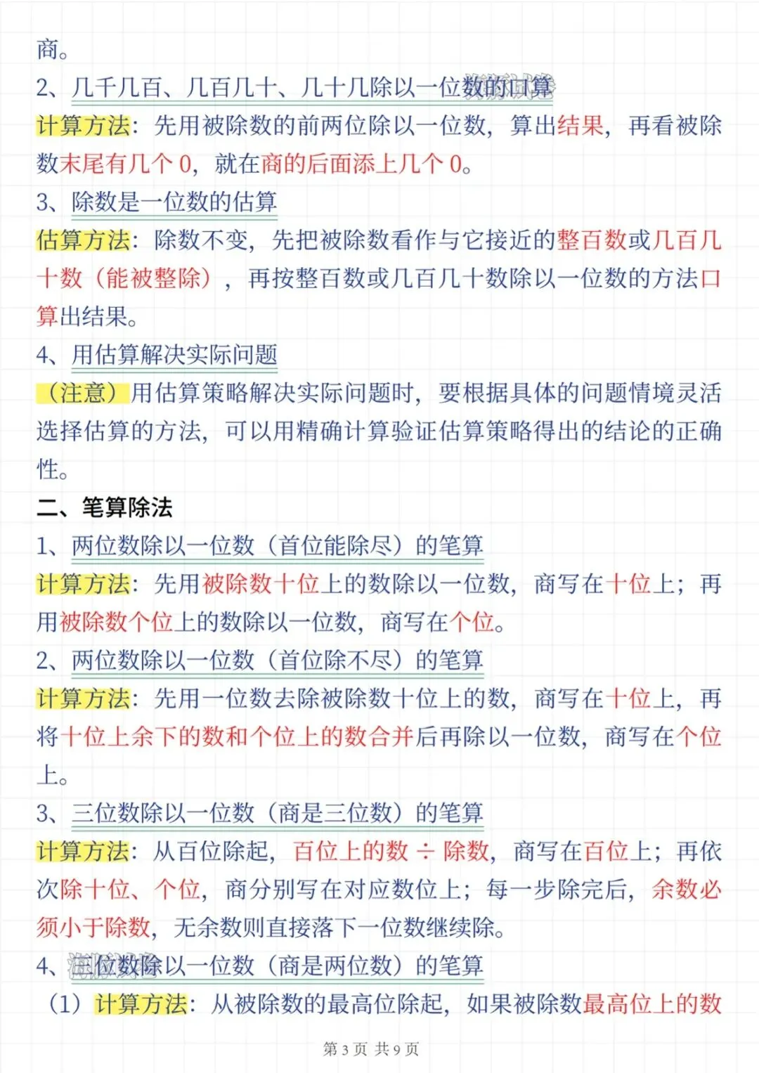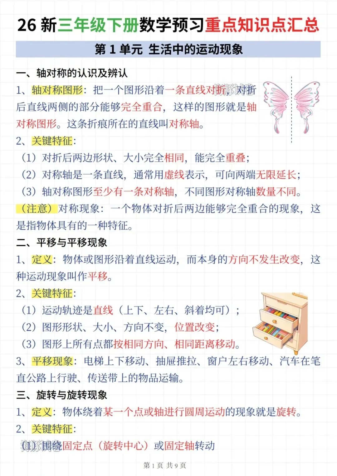 三年级(下)数学预习重点知识点汇总