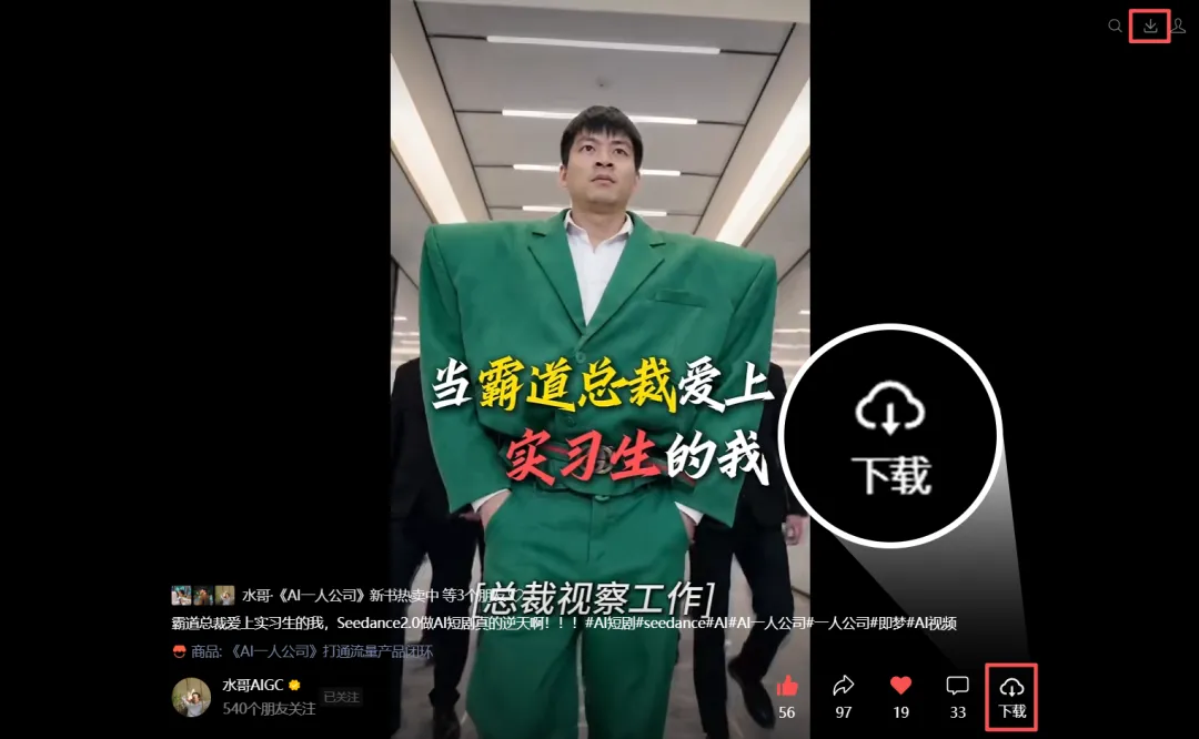 可以点击视频播放一下,然后暂停,接着点击评论图标旁边的这个新出现的下载按钮。
