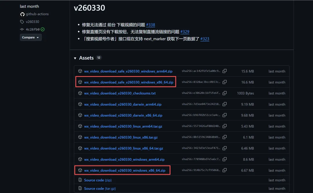 至于有些带Safe的,能看到它的文件大小也比较大,这种是因为里面内置了所有必要的一些运行依赖环境,比如一些FFmped视频处理组件这些。