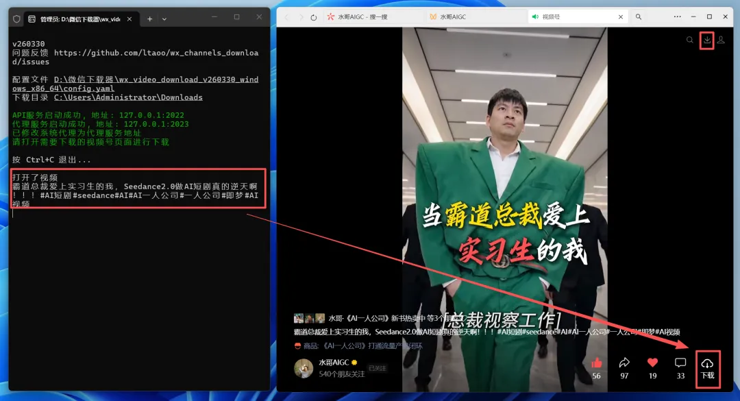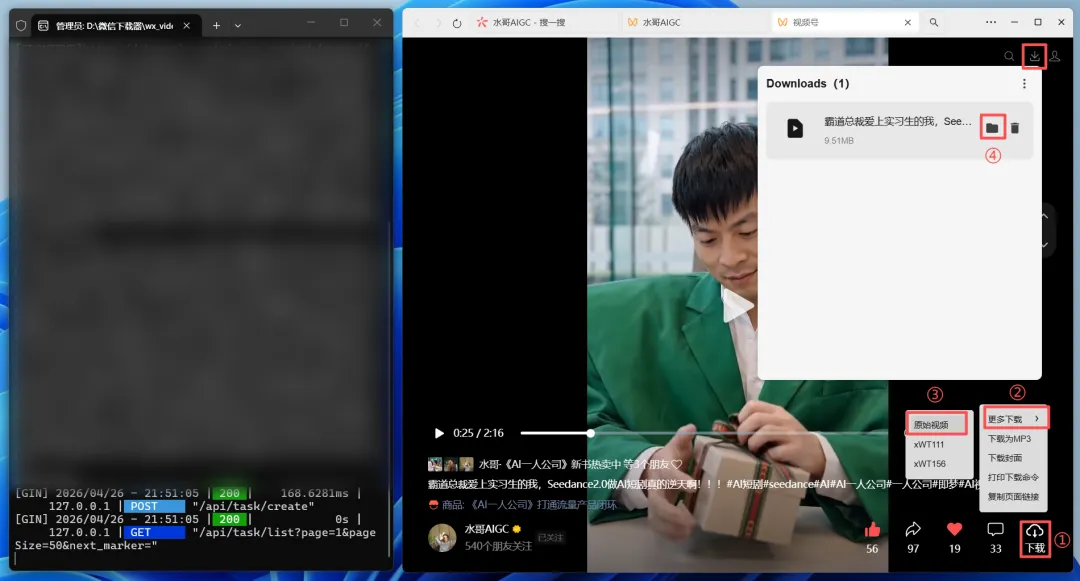 对了,如果安装包懒得自己下载的,也可以直接找我要哈,👉shuigeaigc,备注下「视频号下载」。