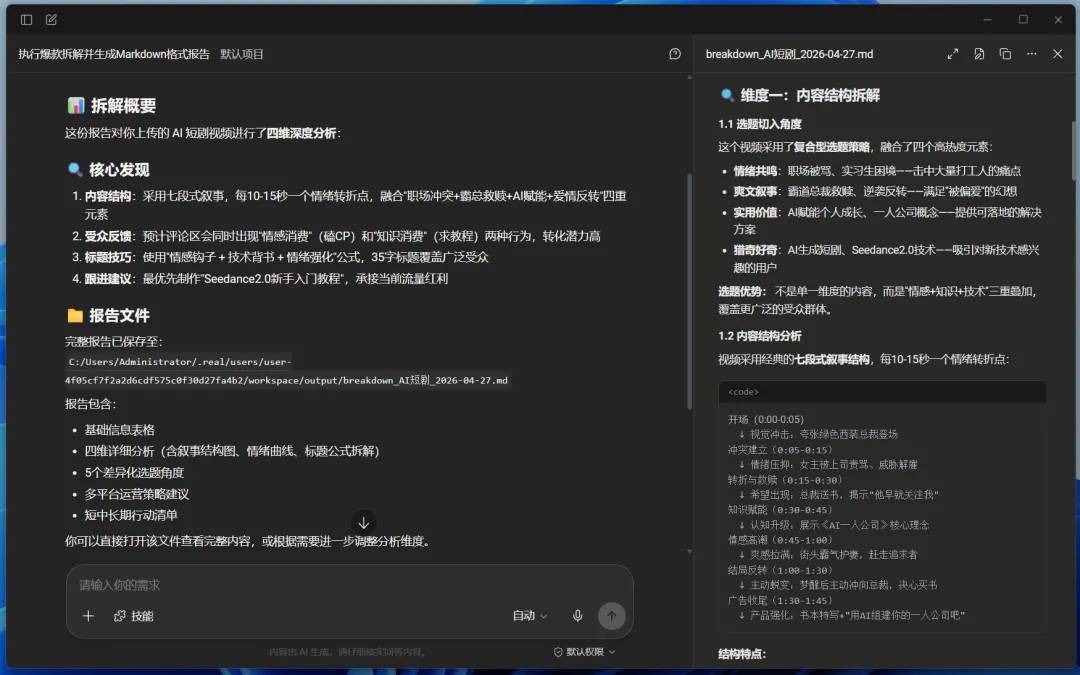 真正的实战派,会把拔下来的无损视频扔给大模型,让AI去逐帧拆解它的爆款逻辑,提取它的痛点文案。