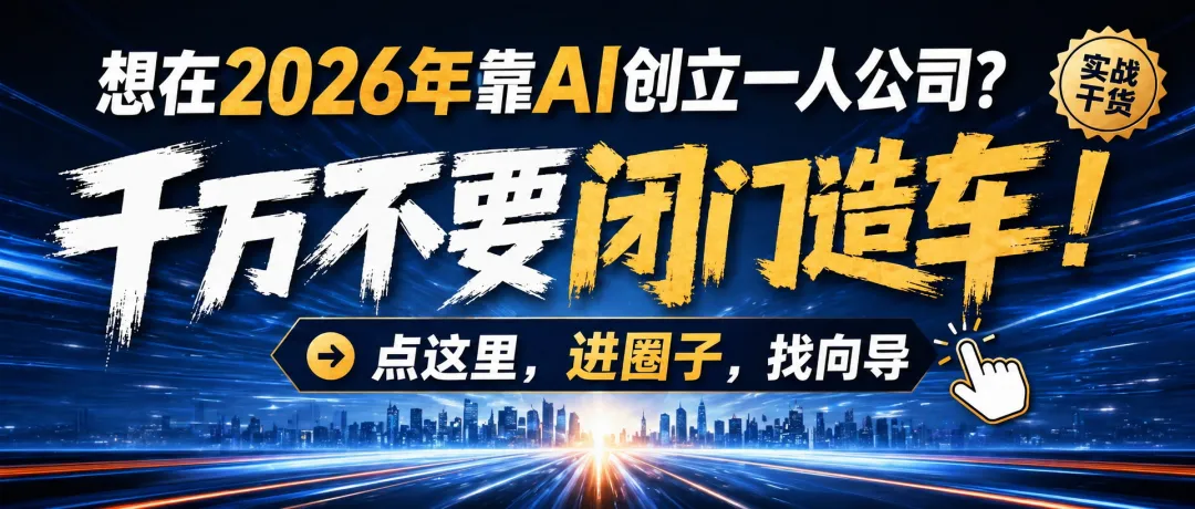 一起AI:如果你想在2026年真正用好AI,用它帮助你提效,打造个人IP、获取流量与变现,强烈推荐加入我的社群「AI一人公司实战圈」,千万不要闭门造车,因为AI变化太快了,或许我们就是你想要找的那个在AI实战方面的向导。