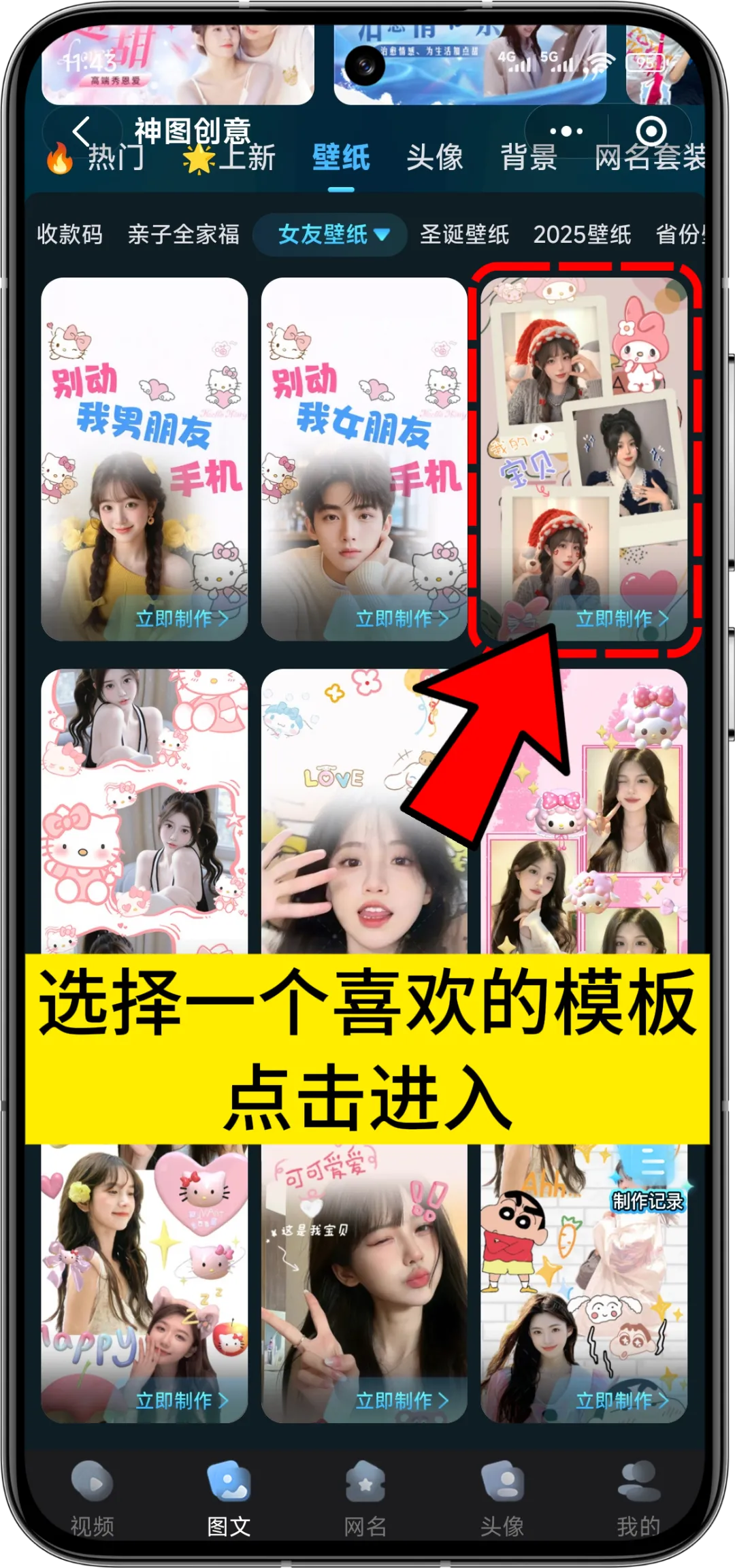 女友锁屏壁纸怎么做(附:一键做同款模板)最近很火的女友壁纸怎么拍/让你对象给你拍壁纸/用女朋友照片做壁纸,还有很多宝子不会制作,模板已备好,1分钟一键生成,下面教大家如何制作!第一步:点下方【制作按钮】进入小程序👇第二步:选择一个喜欢的模板点击进入第三步:更换照片,点立即制作,等待壁纸生成即可想让她的手机锁屏变成你们的专属甜蜜空间吗?其实超简单!不用学修图,只要选个她最爱的萌趣模板,放上你们的合照,专属情侣壁纸瞬间生成~ 👇更多模板推荐👇 想让她的每一次解锁手机都变成穿越时空的甜蜜重逢?微信「神图创意」小程序藏着让爱意具象化的魔法——把你们的日常照片变成会呼吸的互动剧场。1.微信搜索"神图创意",输入爱的密码【1688】,解锁「双人心动」特别模式 2.上传她低头浅笑的侧颜照,AI会自动生成「睫毛轻颤+脸颊泛红」的生动效果,双人合照触发隐藏机制:两人会同步做出「靠肩」「碰鼻尖」等亲密小动作 3.设置专属唤醒词(如"早安我的小太阳"),说出时壁纸会飘落对应主题花瓣雨