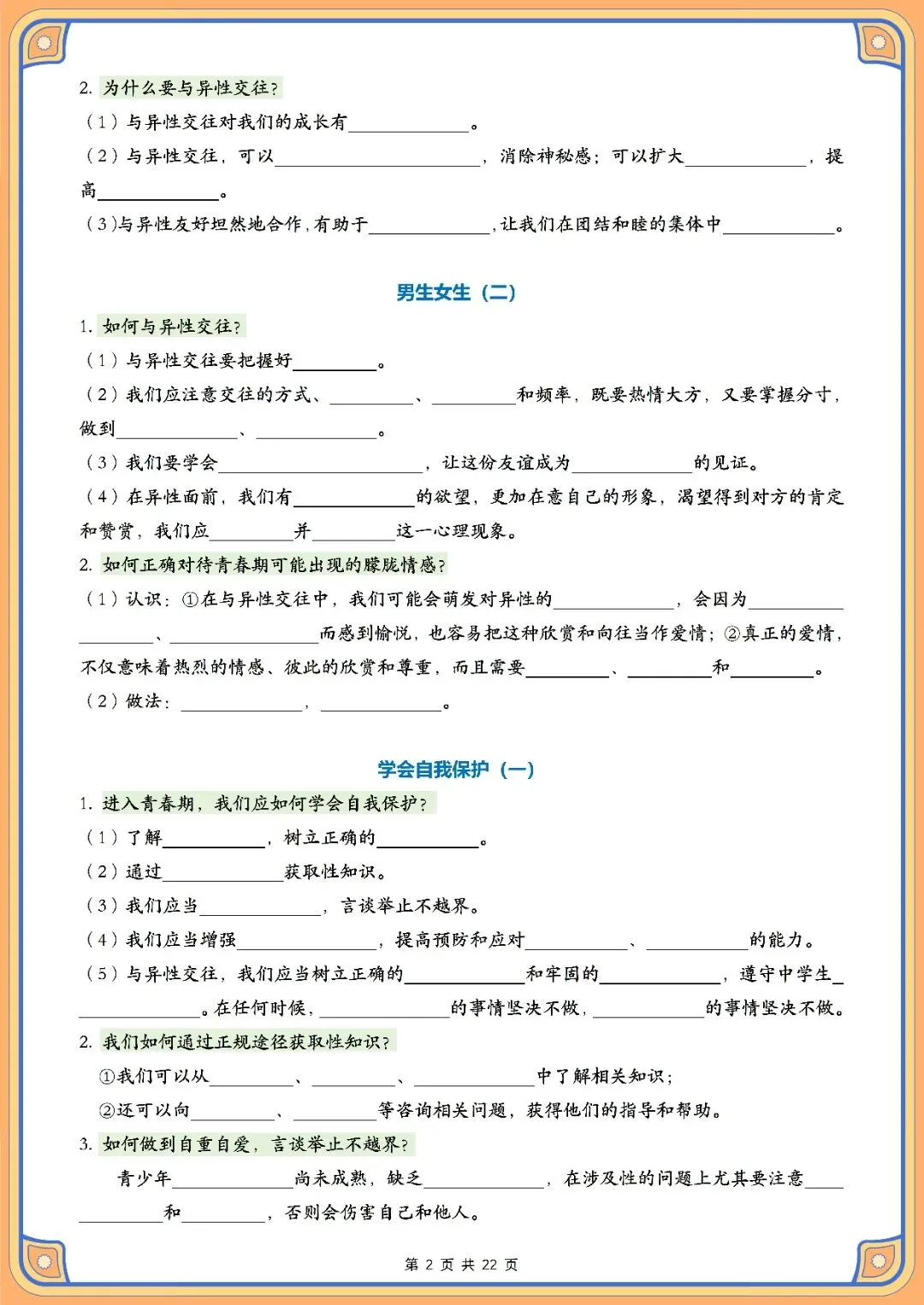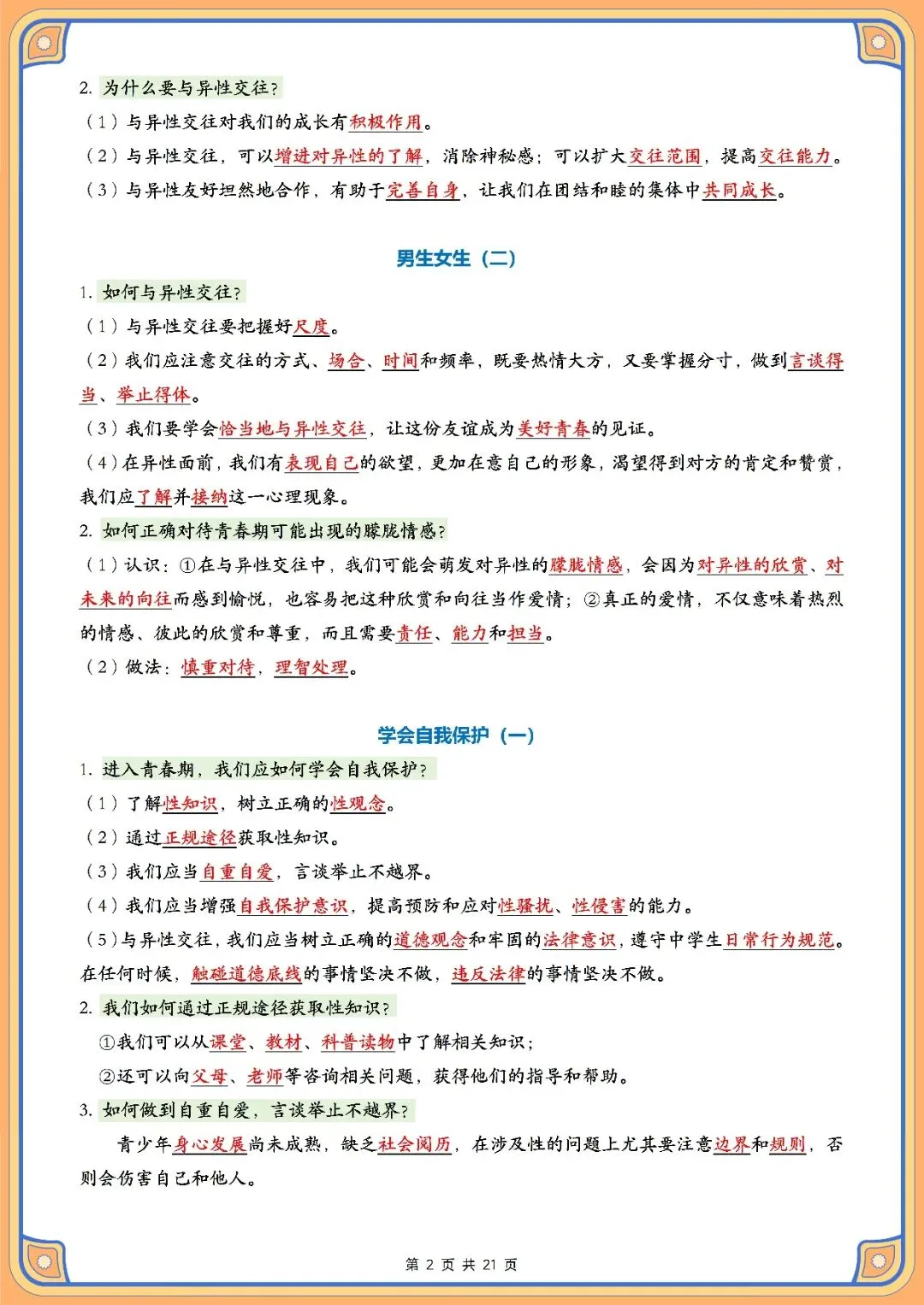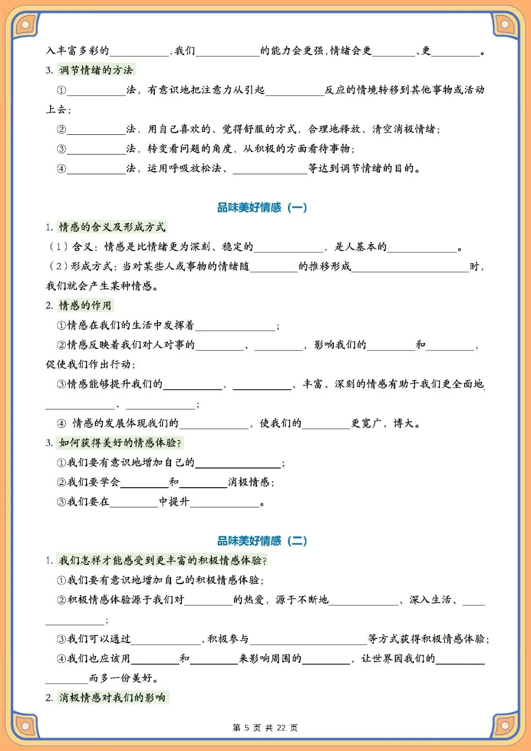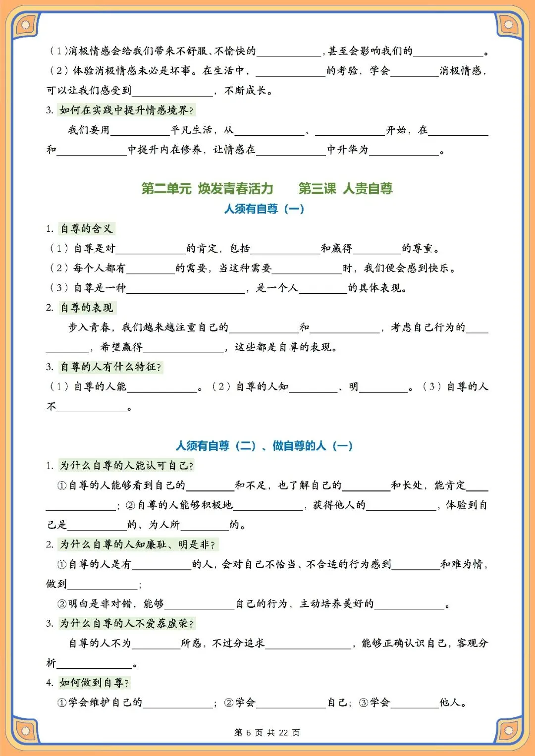 资料体系以青春成长、情绪管理、自尊自信培养、中华优秀传统文化和法治安全这五个主题为主线,一共开设了十一节课的内容。其结构化的框架把青春期心理健康发展的关键要点,情绪调节的策略、自我价值的建立,传统文化的精华以及法律知识教育结合在一起,用简洁易懂的方式来表述核心的内容,让学习者直接抓住重点,实现高效复习并准确找到考试得分点。配套空白默写练习册用填空题的形式来组织,意在引导学生完成背诵之后立即进行实践操作,通过即时反馈和反复练习使知识得到有效的内化,妥善处理因概念不清或者容易出错的词汇造成的记忆问题。本资料适合课后自主复习、单元总结测试、期中、期末等阶段性考核使用,只需要每天花费10-15分钟就可以对七年级下册道德与法治科目核心知识点有系统性的了解。