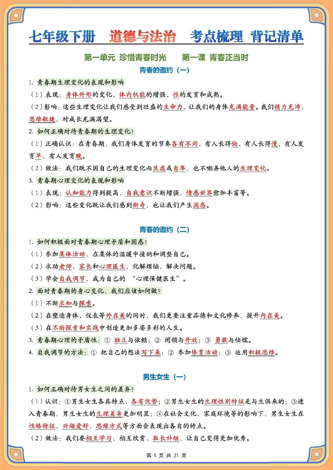 今天为大家整理的是2026 春七下道法背记清单汇总【默写版+背诵版】(电子版可打印),以下为部分文字版+图片梳理: