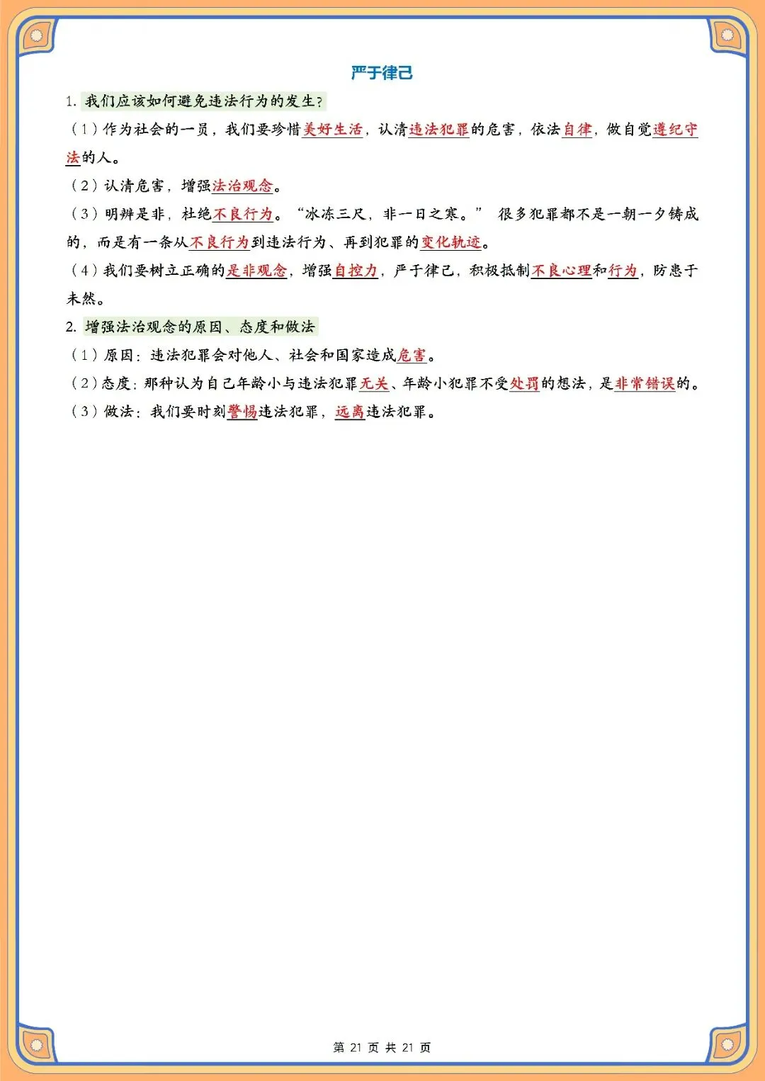 以校内考试大纲为基础,采用科学的标引体系覆盖所有关键考点,既可以满足基础较好的学生快速高效的复习,又可以帮助基础较差的学生解决各类习题,同时也能够满足学困生巩固知识的目的。由于道德与法治课程注重理论性、记忆性,所以本资源用归纳整合的方式把分散的知识点系统化、结构化地组合成完整的知识网络,以帮助学生加深理解、完善认知结构,全面提高学生的应试能力和思维品质。