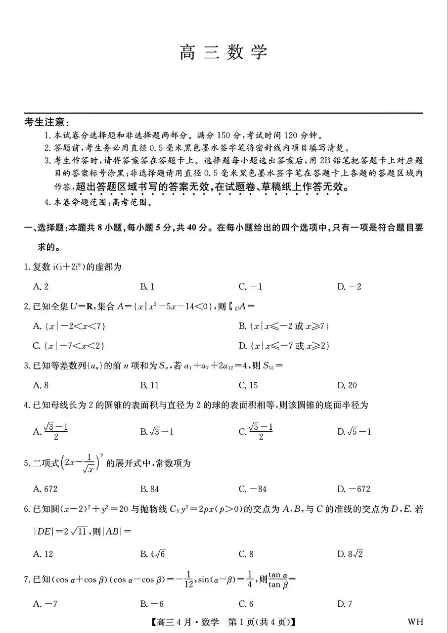 【免费下载】湖北省武汉市2026届高三年级4月学情调研检测数学试题及答案(四调)202604点击上方“数海耕耘”关注文末免费下载整篇文档电子版点这里下载试题及答案电子版不是高考卷胜似高考卷免费下载以下10套经典模拟题【必刷卷】不是高考卷胜似高考卷强烈推荐2026年含金量极高的十套高考模拟卷(附详细答案)可下载打印(里面包含武汉三调,浙江Z20,长郡中学联考,成都七中二模,温州一模,江南十校,佛山一模,东北三省,扬州一模,赣州一模共10套经典模拟卷)更多精彩内容,请关注公众号…喜欢本文就点个赞吧!