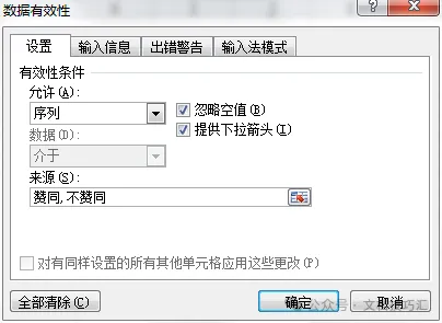 比如说,来源中选择“赞同,不赞同”,点击“确定”。