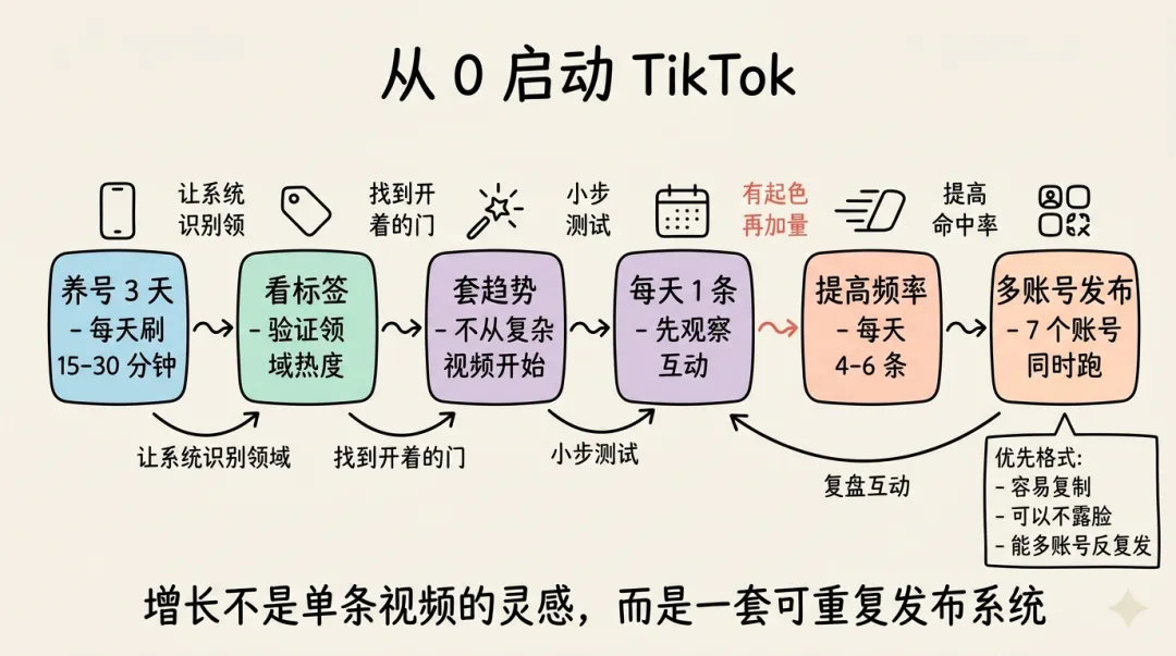 不要一开始就发非常复杂的视频。先找一个已经被验证的趋势,把自己的 App 想法套进去。刚开始每天发一条,观察互动。如果几天后看到有起色,再提高频率,比如每天 4 到 6 条。