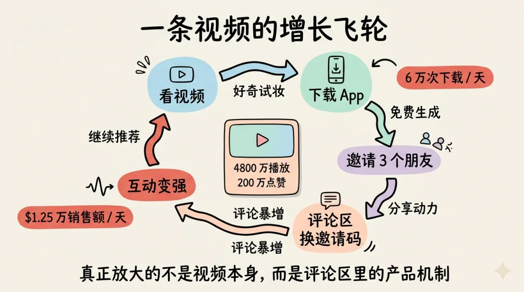 这篇文章我不想把它讲成“灵感改变人生”的故事。真正重要的是:我为什么以前做 App 总失败,为什么这次先研究 TikTok,再做产品,最后怎么把一个短视频变成一天 1.25 万美元销售额。