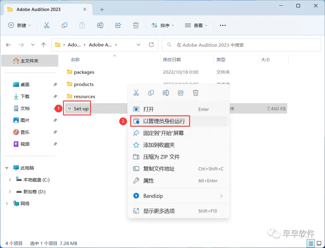 1、下载Adobe Audition 2023软件安装包到电脑上,右键选择【解压到Adobe Audition 2023\】