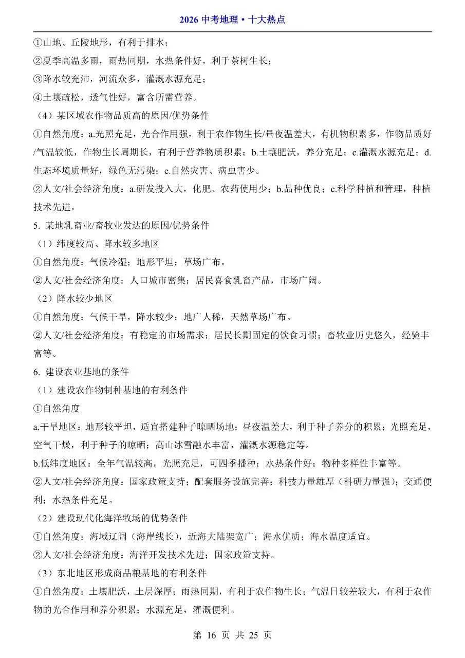 只要扎扎实实背熟这份重点,考场答题就能下笔流畅,避开易错陷阱,稳稳拿下高分。掌握这份专属冲刺资料,告别地理短板,考试轻松逆袭,稳拿年级第一,助力每一位同学地理会考稳稳满分!