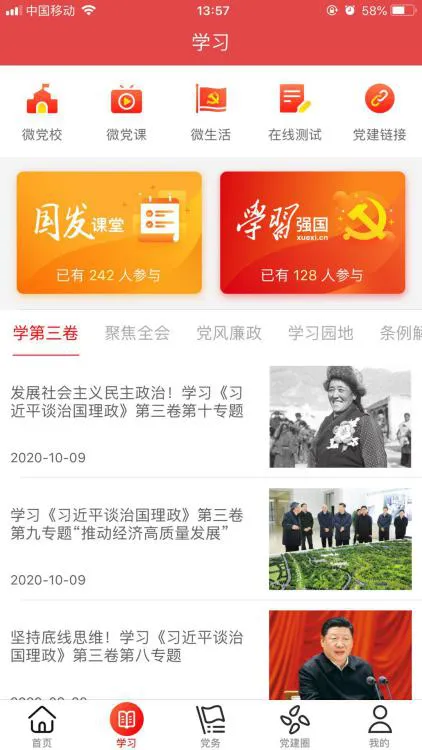 “国发课堂”特别开展党员微党课竞赛,微党校、微生活、在线测试等学习库资源不断丰富,以课促学、互动助学、学测结合、积分激励,提升党员学习效果。目前平台已开设党的十九届四中全会、《民法典》《中国共产党国有企业基层组织工作条例》、《习近平谈治国理政》第三卷等学习专题,共学习30万次,党员人均学习700篇次,助力打造高素质干部人才队伍。