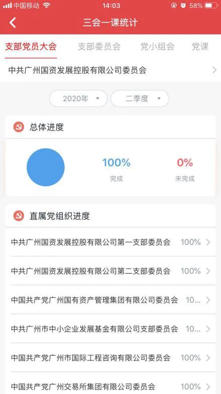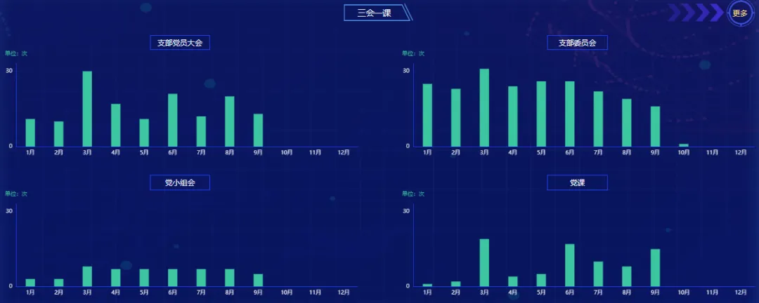 将标准化党建工作从线下“搬”到线上,在线开展组织生活,党建考核实时可视化展示,强化民主监督功能。经过各级党组织实时督导,截至10月10日,平台“三会一课”共有611次,2020年以来,支部党员大会、支部委员会、党课等完成率近100%。