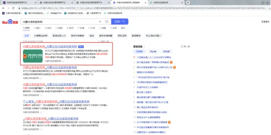 一、通过电脑浏览器搜索内蒙古政务服务网并点击进入。
