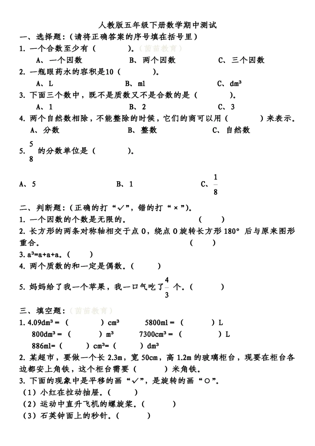 二、1. ×;2. √;3. ×;4. ×;5. ×;