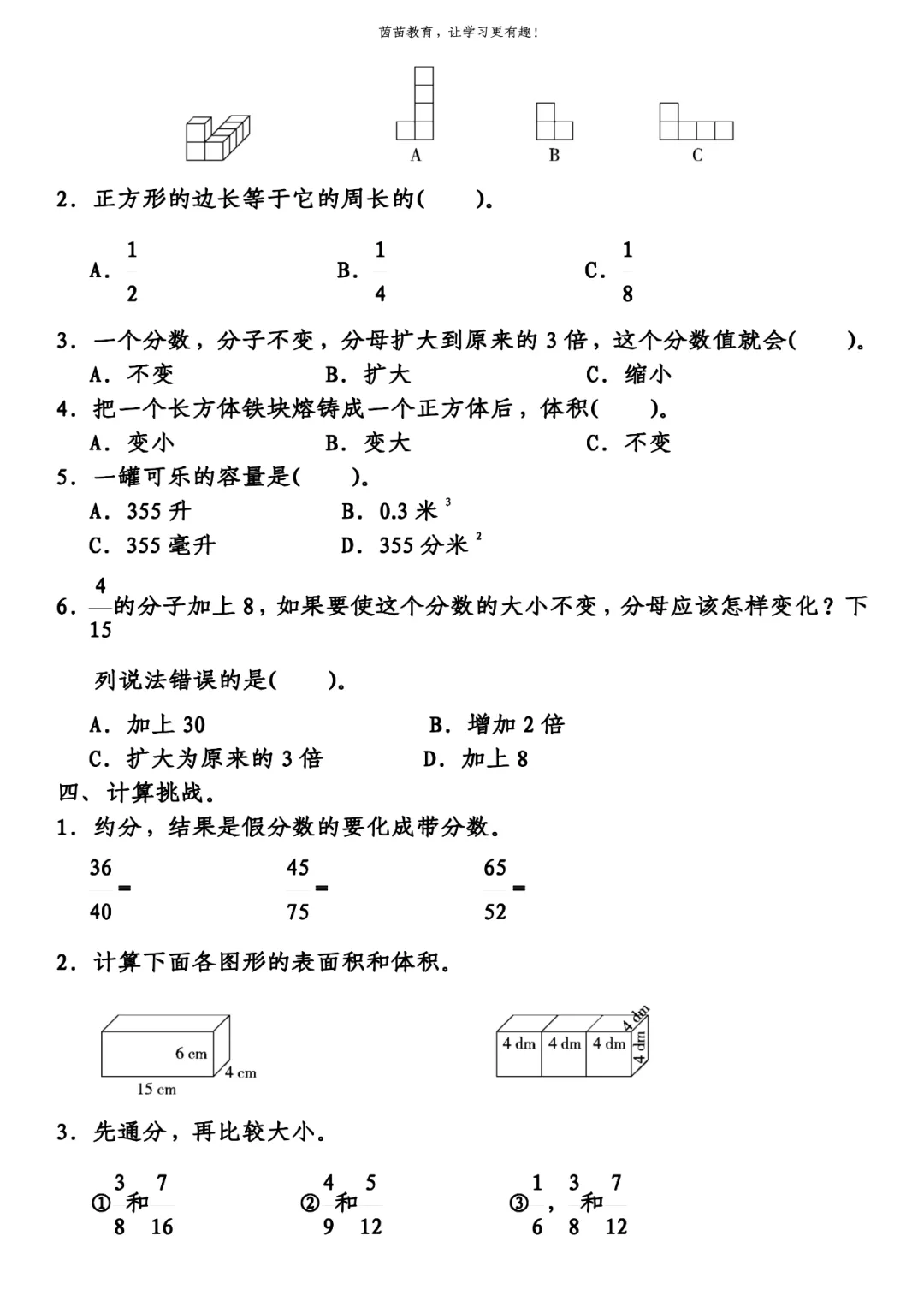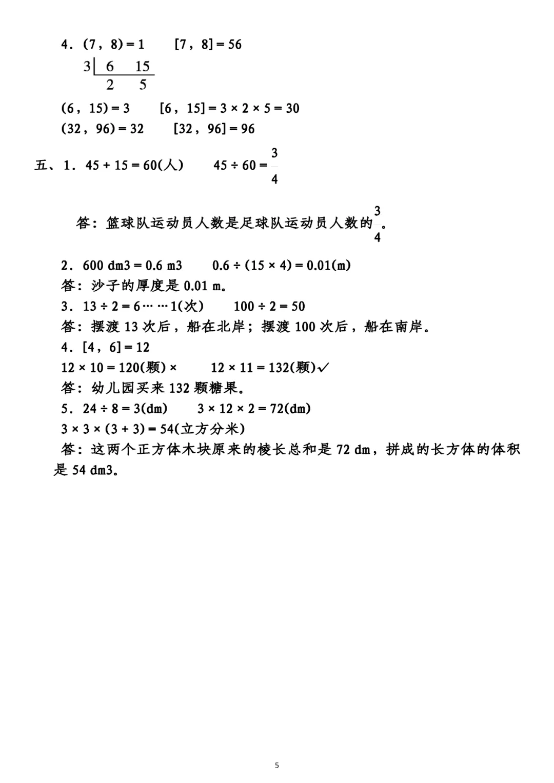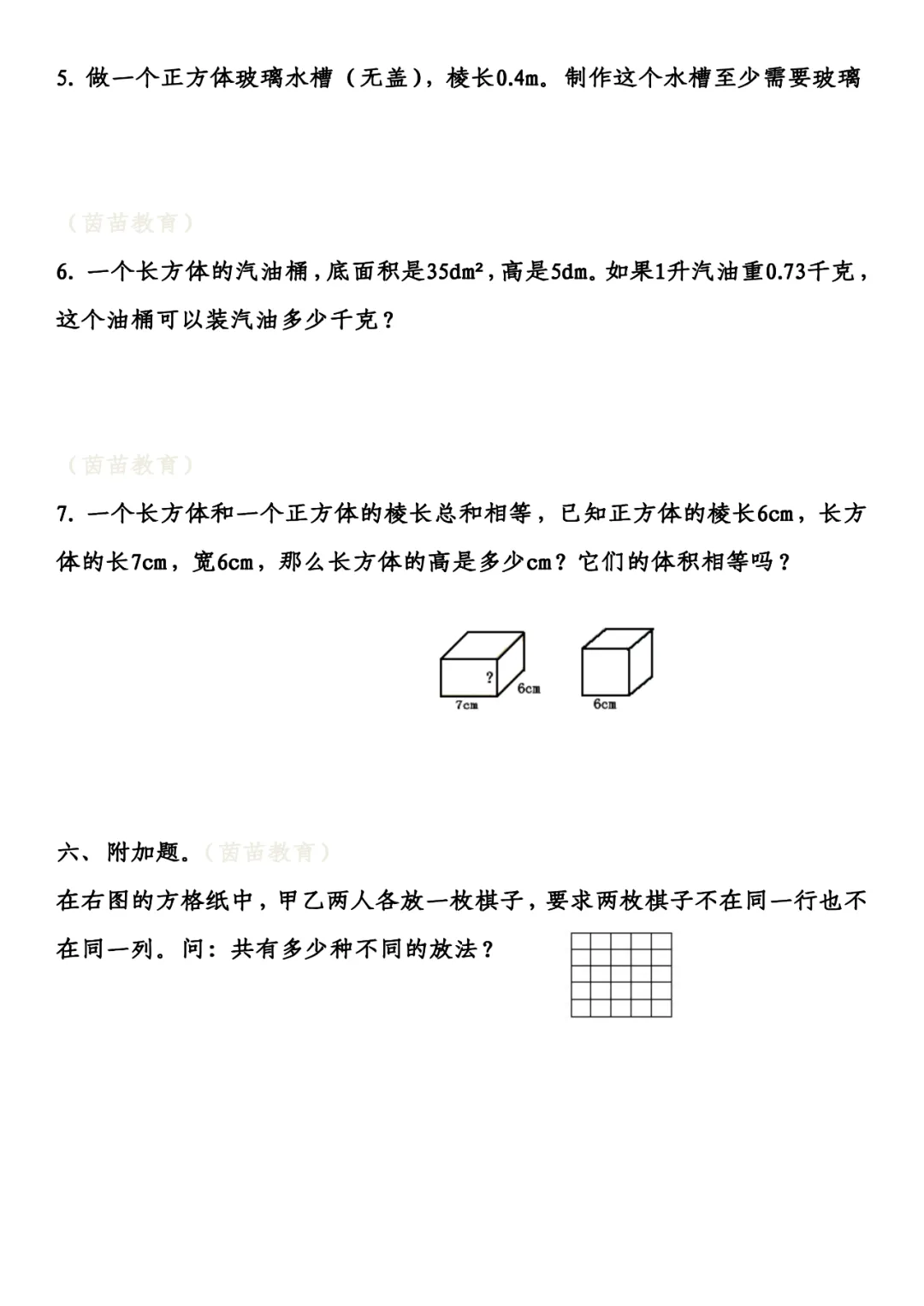 7. 长方体的高是5cm;210立方厘米不等于216立方厘米,他们的体积不相等。