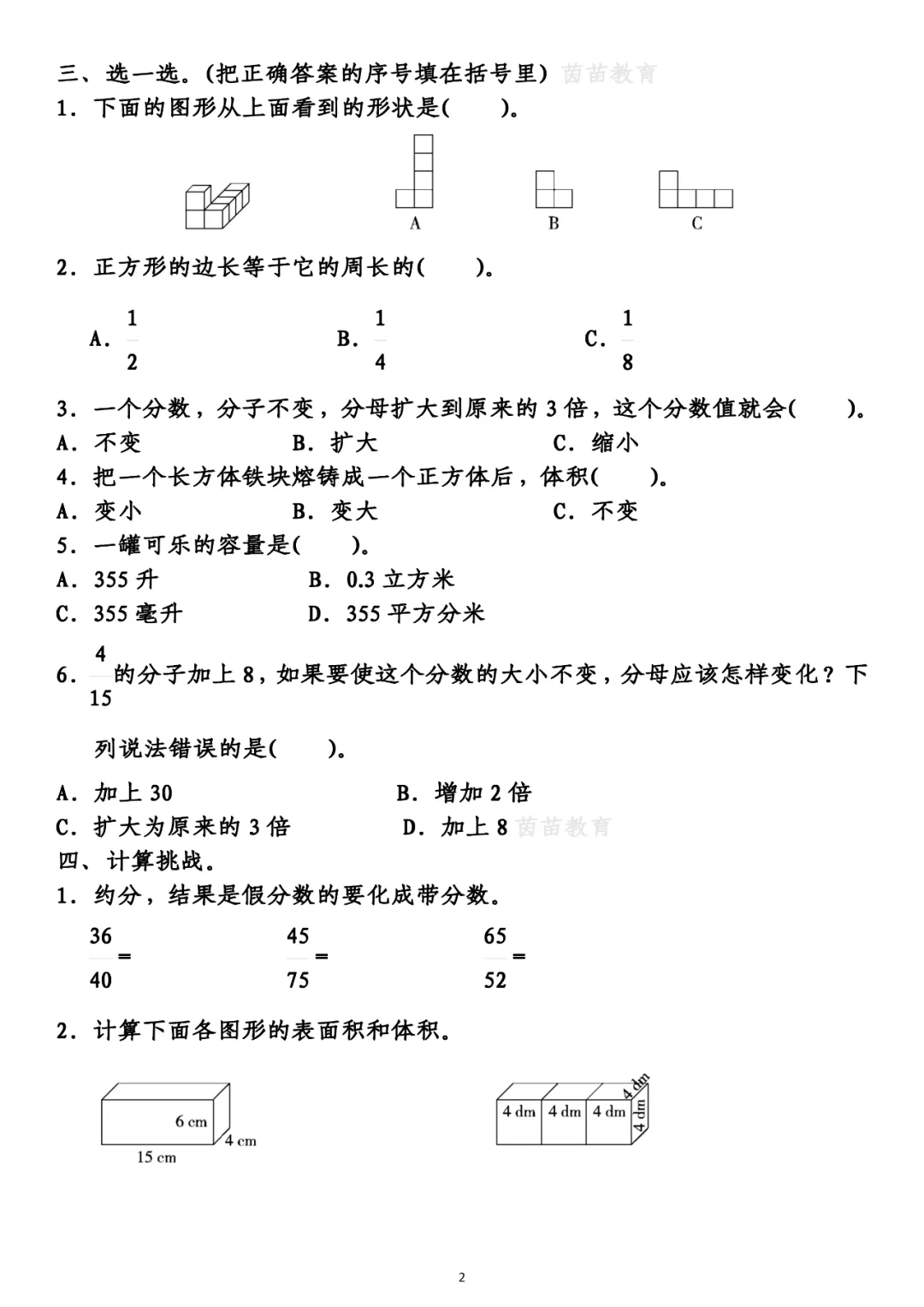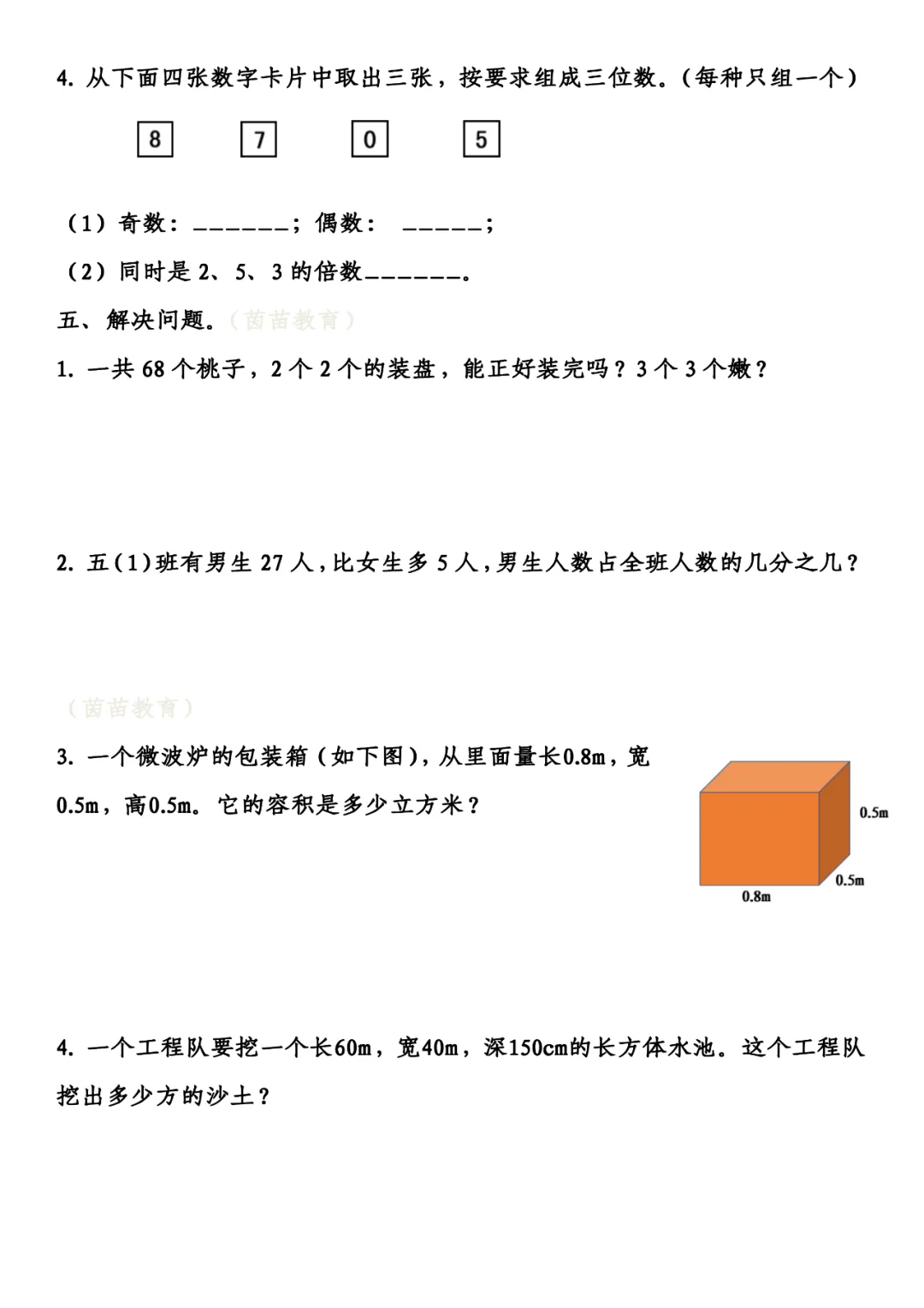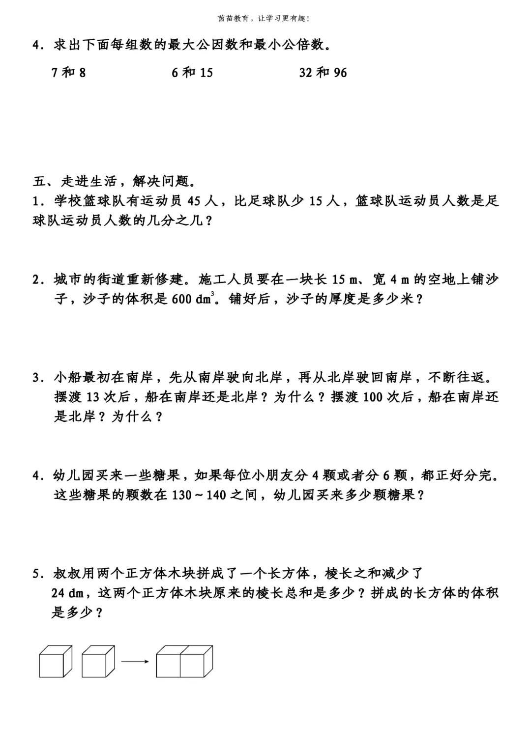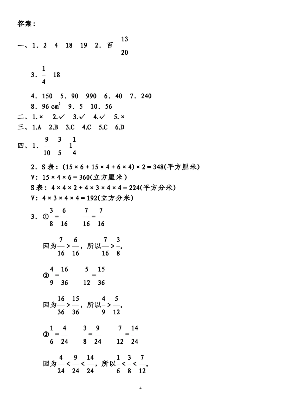 7. 长方体的高是5cm;210立方厘米不等于216立方厘米,他们的体积不相等。