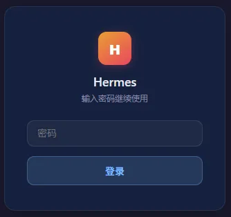 1. 应该看到:Hermes WebUI 的登录页面或密码输入界面 2. 输入密码后:进入主界面