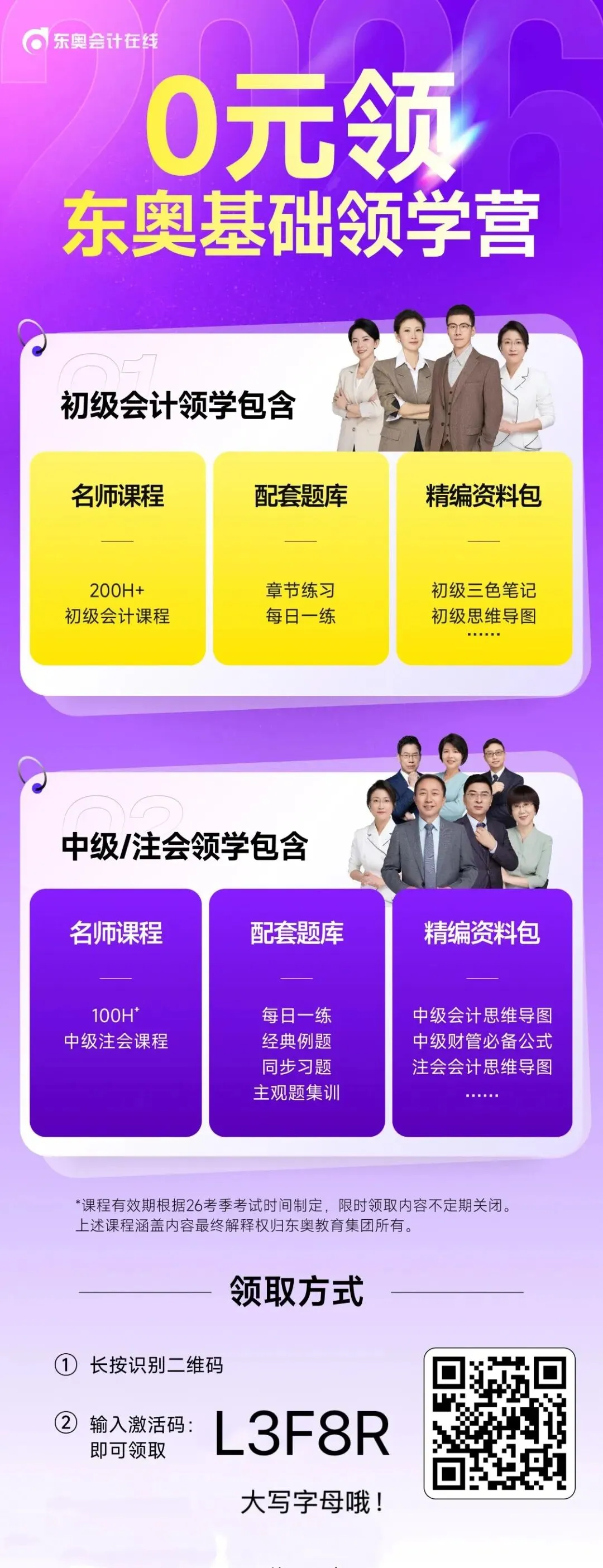 2026年初级会计《考前预测卷》电子版资料更新(4.27)微信推送改版啦,为了不错过最新的考试资讯和资料分享,记得把学姐设为【星标】呀~星标方法很简单:点击上方蓝字【财会学姐】→点击右上角【...】→设为星标关注下方两个公众号,防止失联。2026年东奥会计类网课+题库免费使用啦!点击下方↓“阅读原文”↓免费自取!