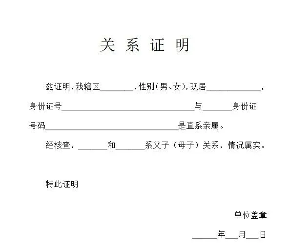 - 亲属关系证明:家庭事务的 “通行证”
