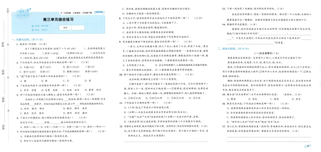 完整版1-6年级下册语文《53全优卷新题型版》含答案,资料含参考答案,一二三四五六年级下册各年级齐全。文章末尾有完整电子版领取地址,欢迎收藏和下载。