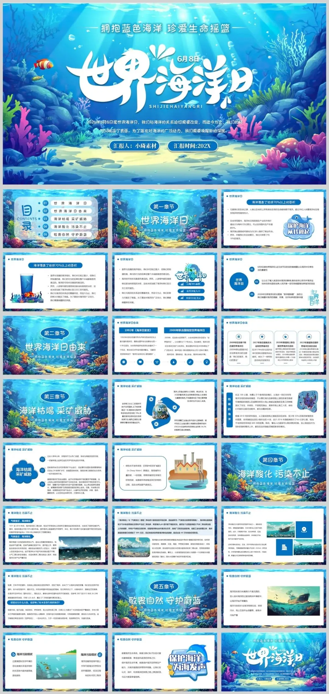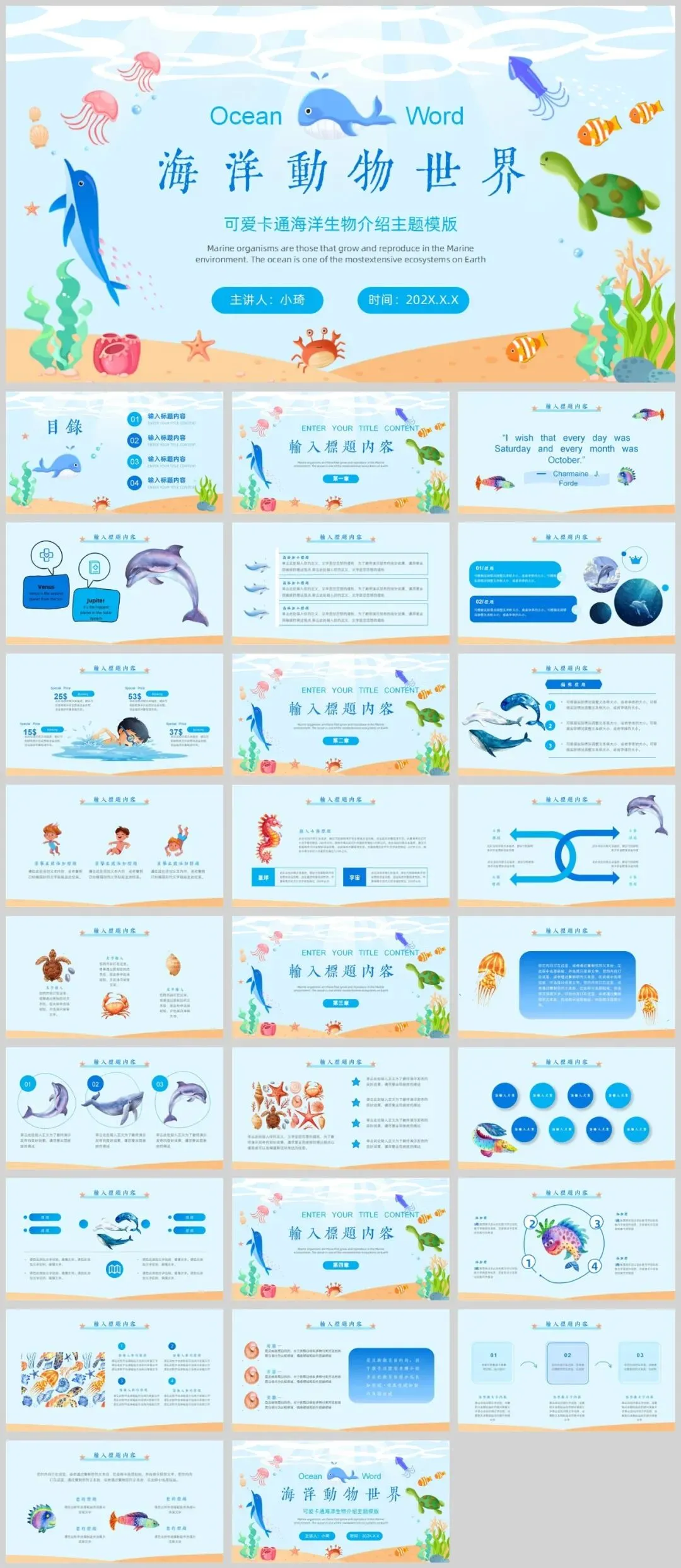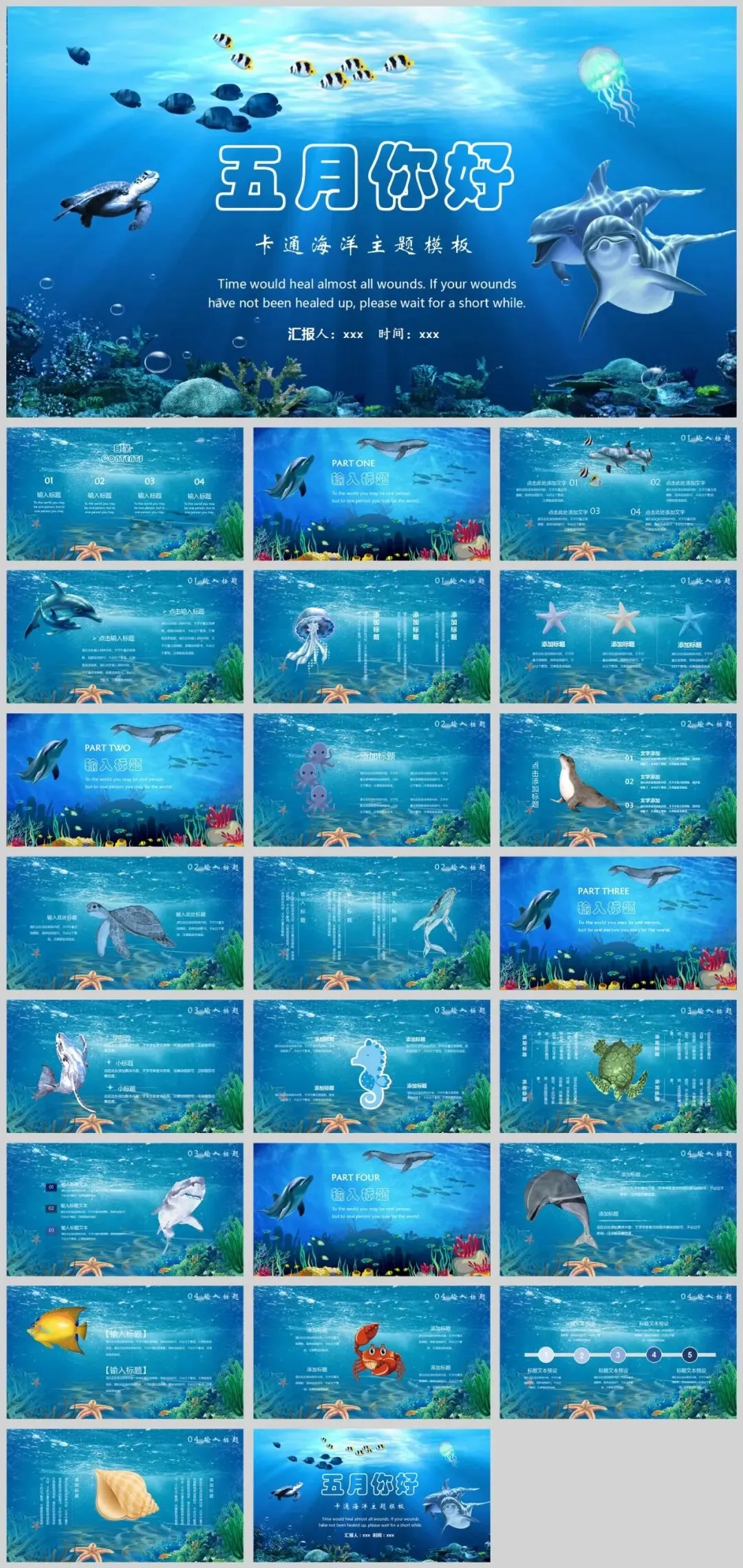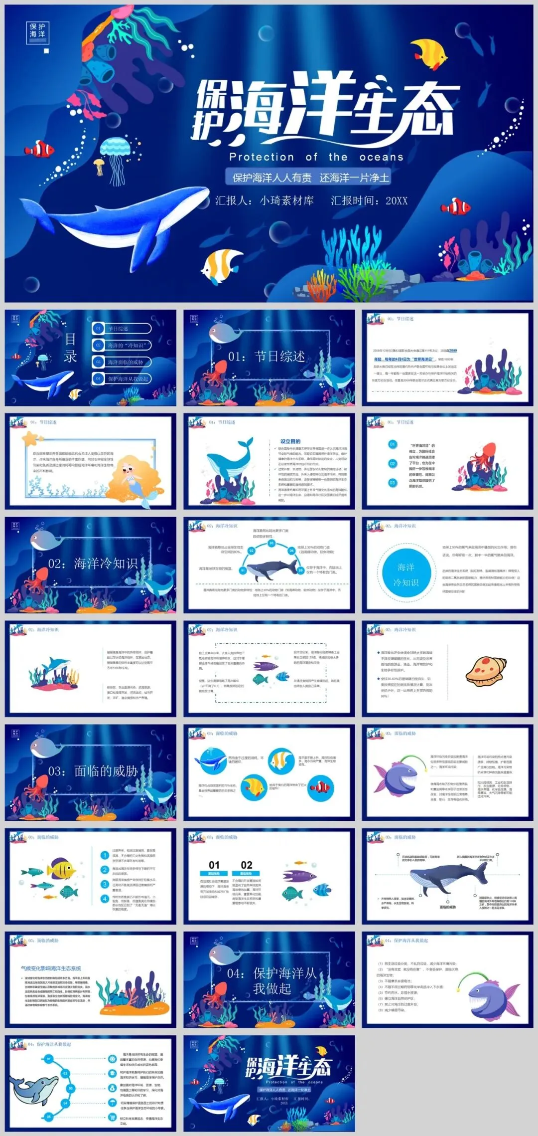 本期又将围绕“蓝色海洋主题PPT模板”展开,适用于世界海洋日介绍、海洋生物介绍、保护海洋生态环境、蓝色海底世界等等 赶紧收藏一波,必要时候真的很有用。