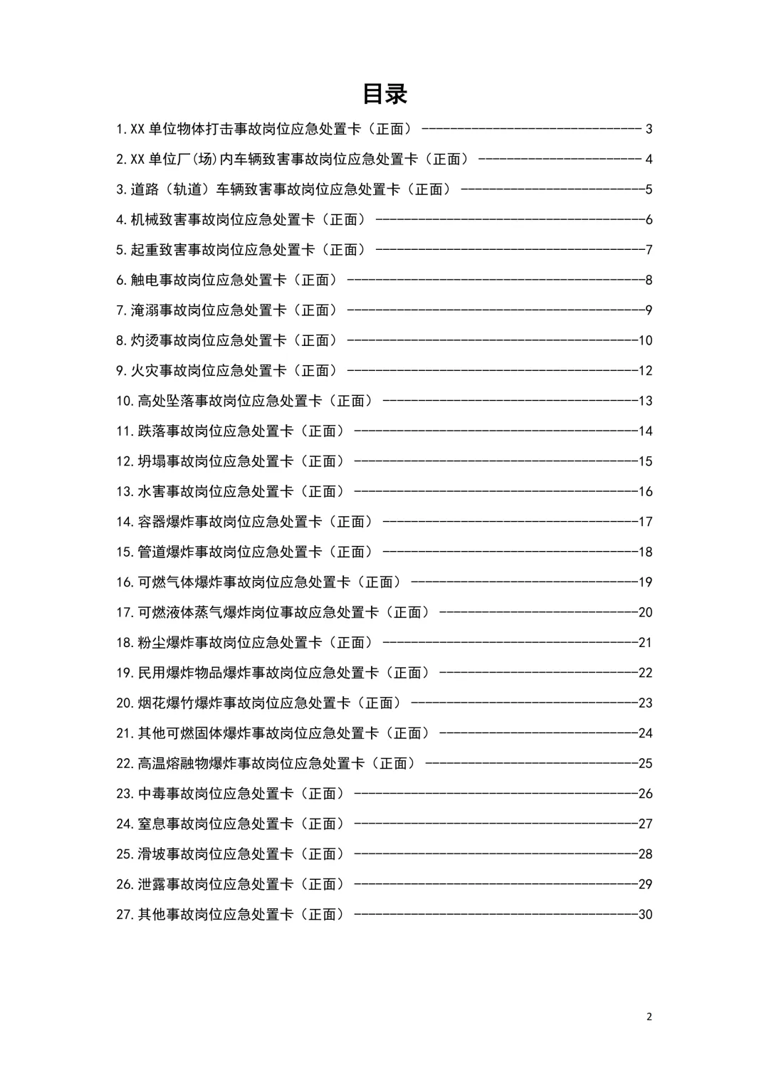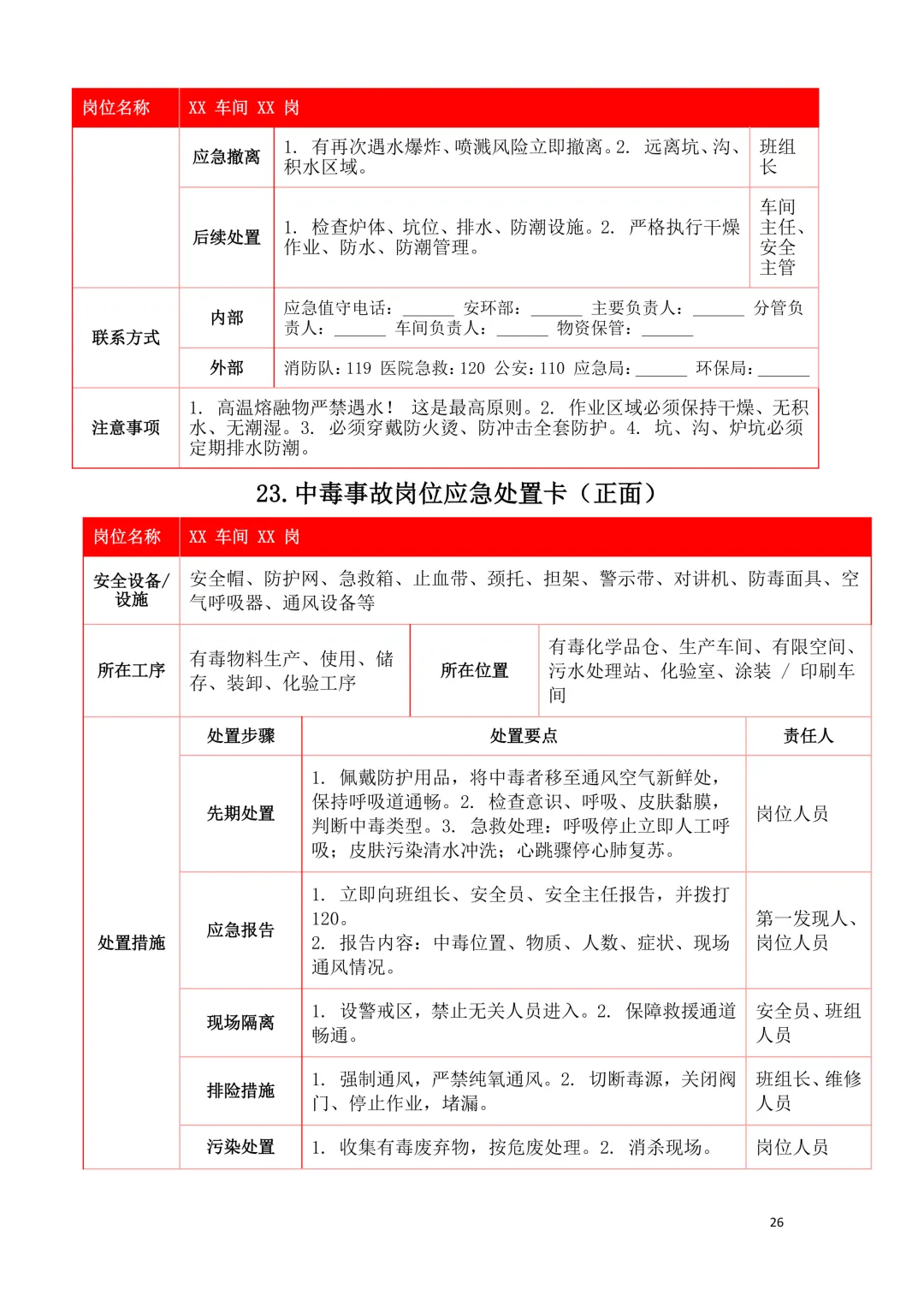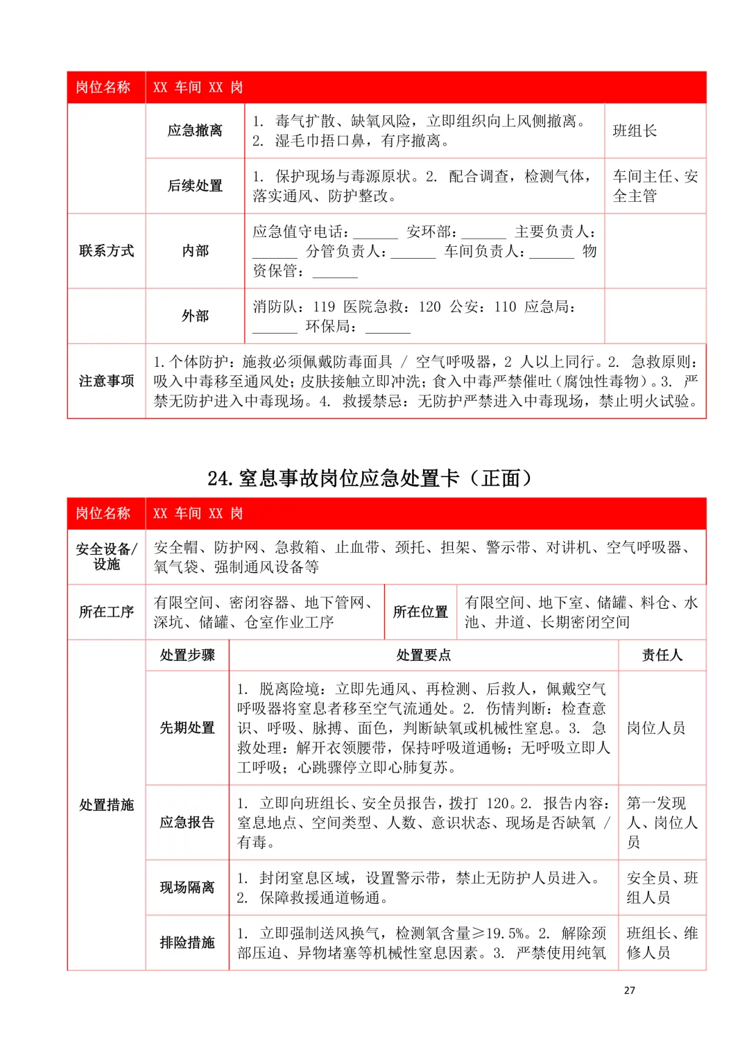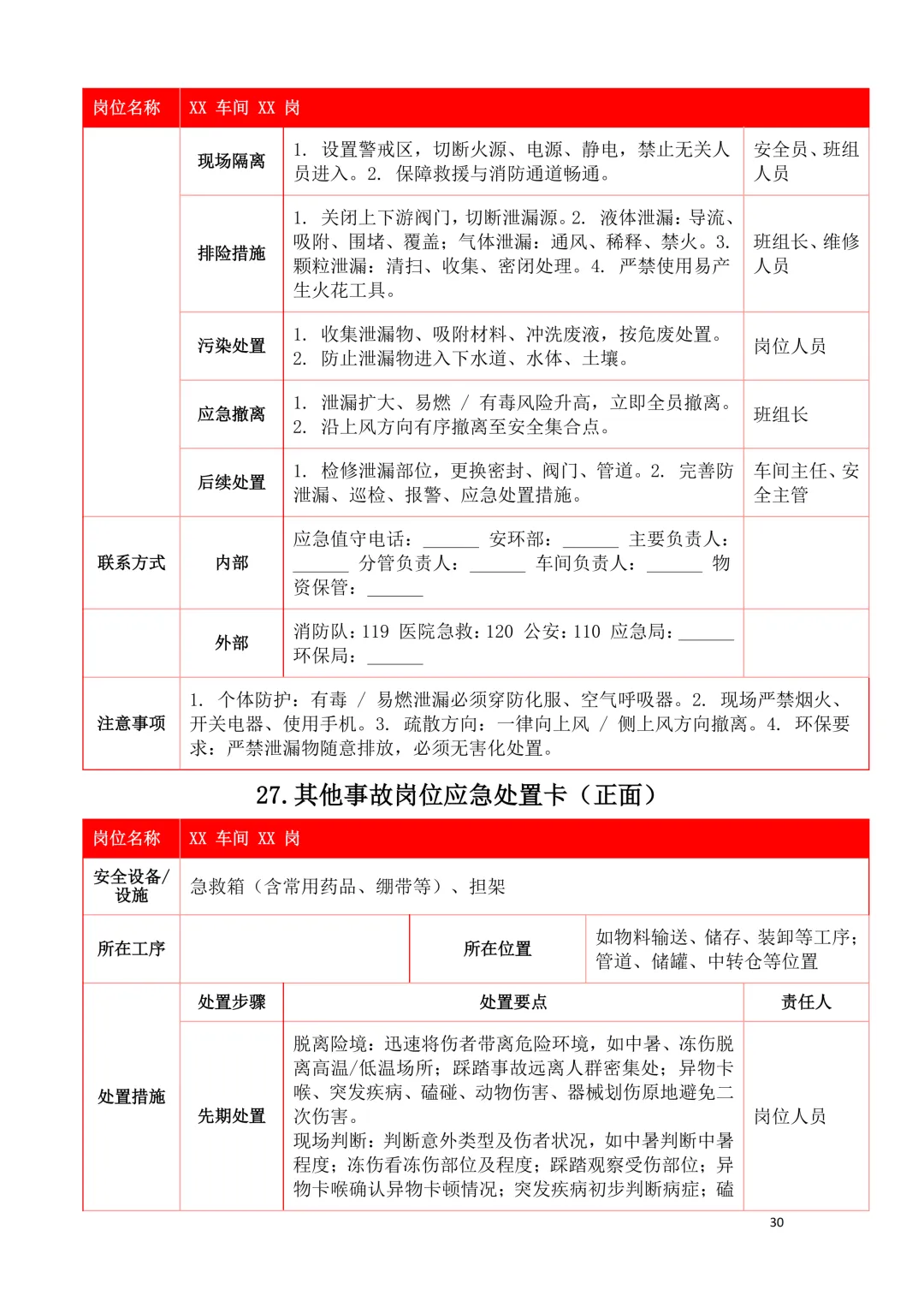2026年新版应急处置卡模板(新版27类事故分类)
