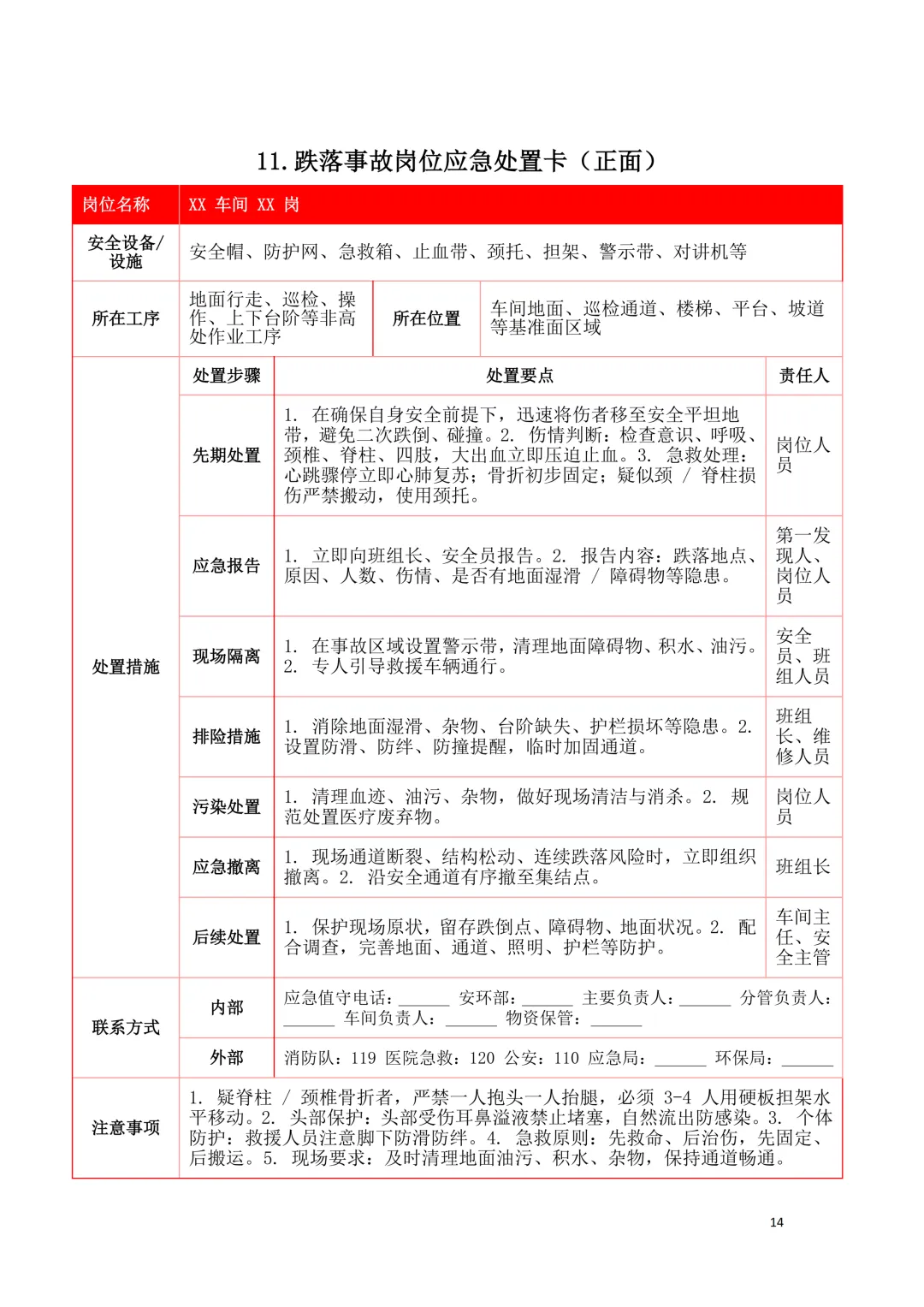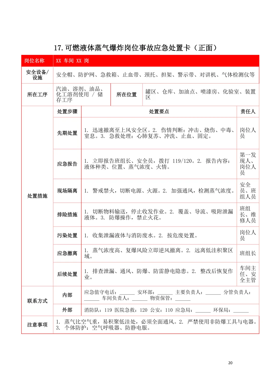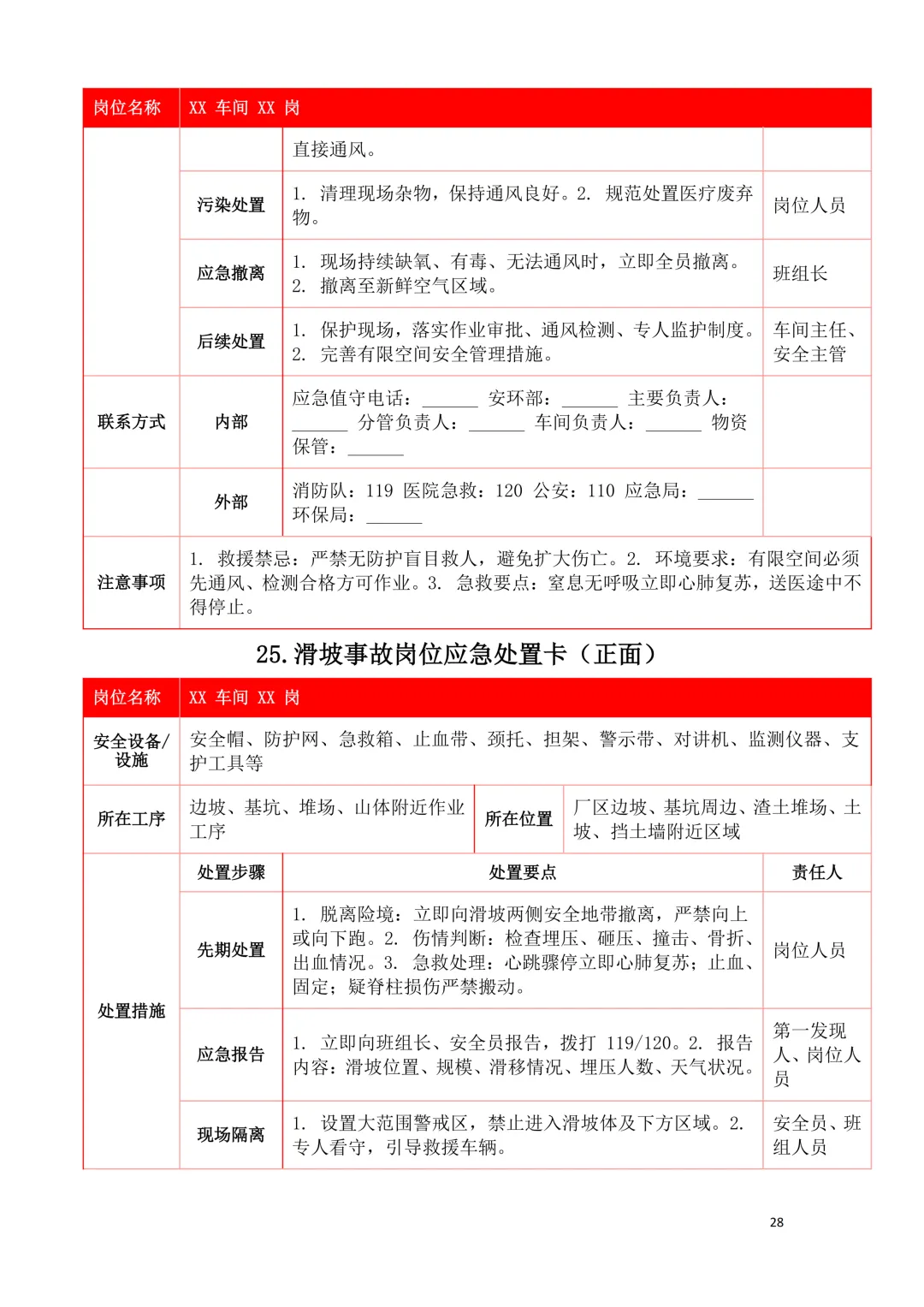 2026年新版应急处置卡模板(新版27类事故分类)
