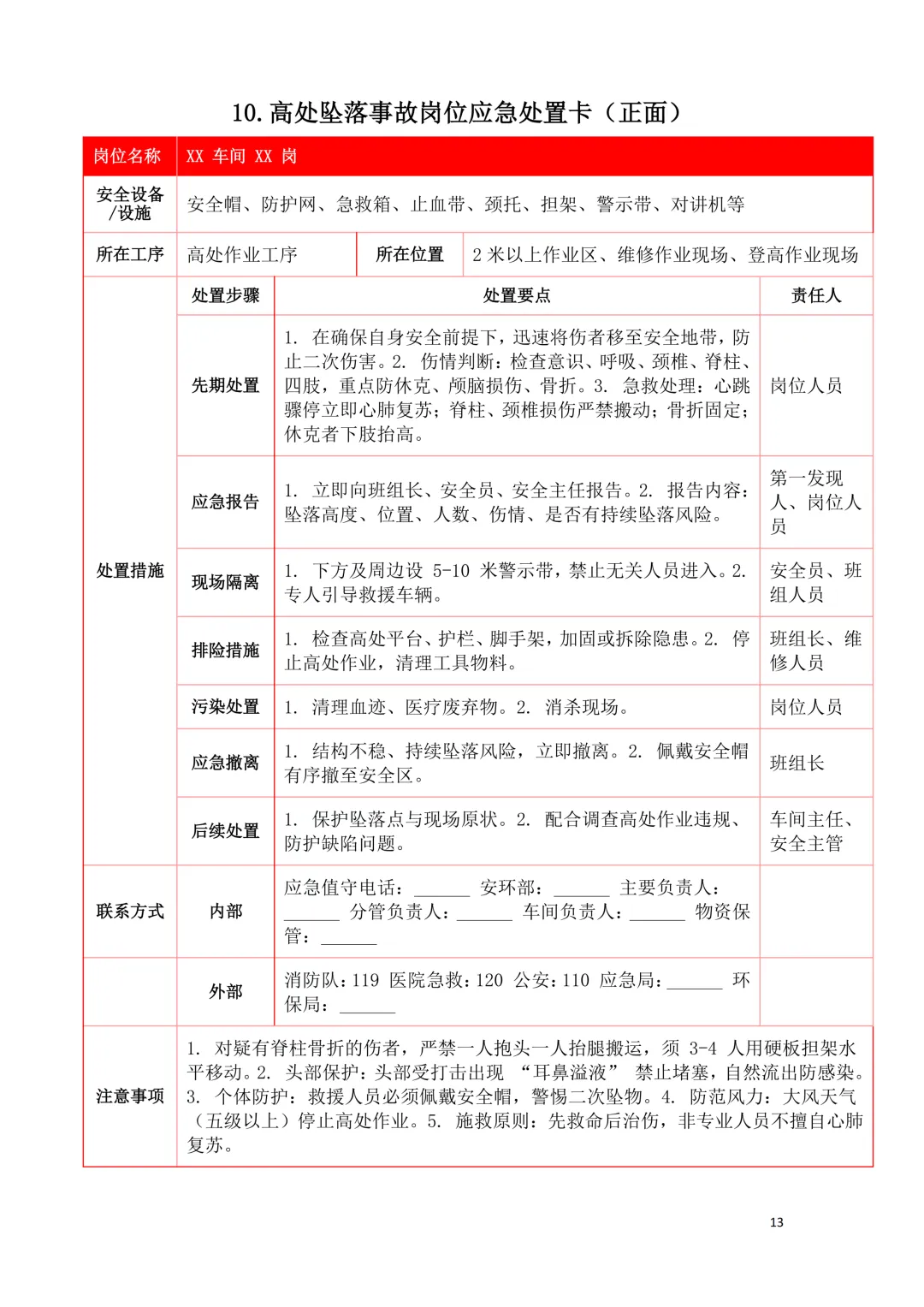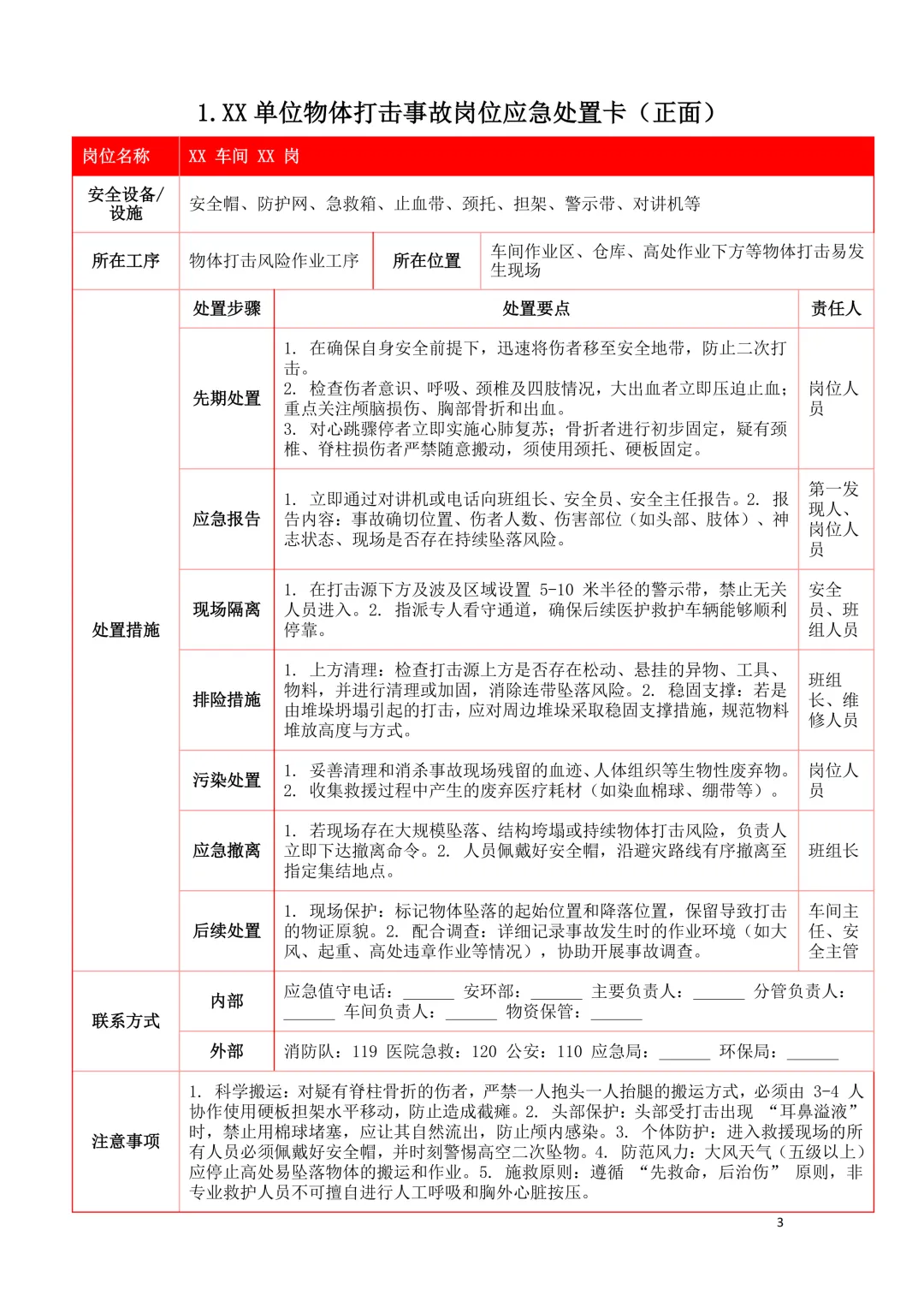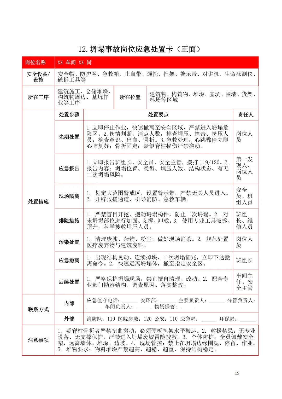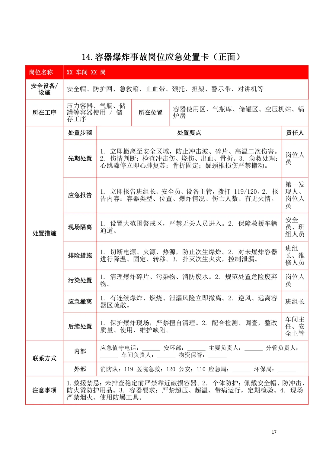 2026年新版应急处置卡模板(新版27类事故分类)