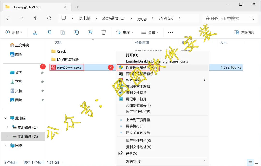3.找到【envi56-win.exe】安装程序,并右键点击【以管理员身份运行】