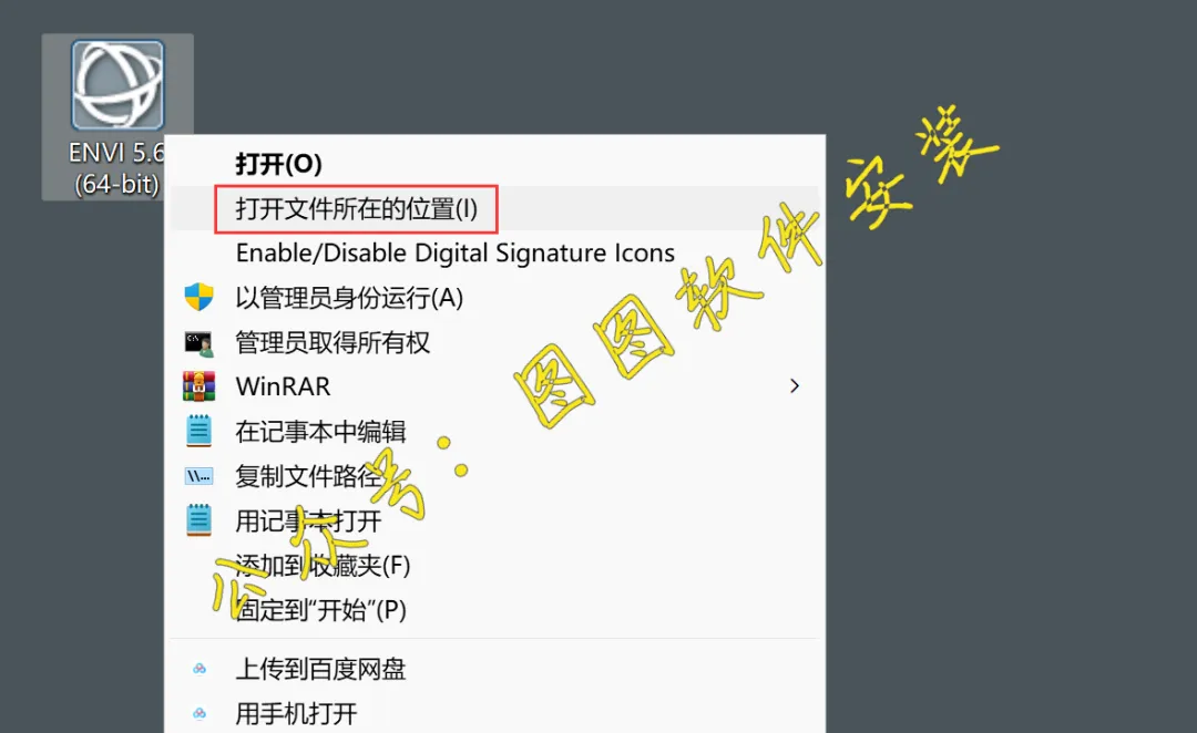 15.回到电脑桌面上,右键【ENVI 5.6软件快捷方式】,点击【打开文件所在位置】