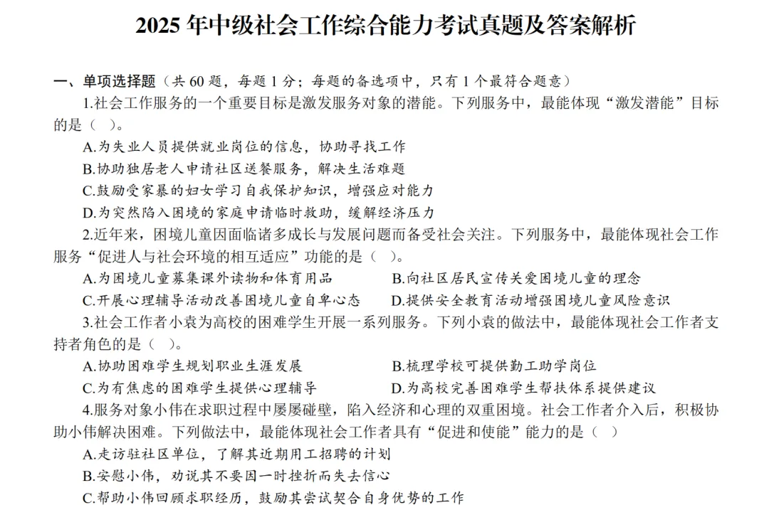 中级社会工作者高频考题