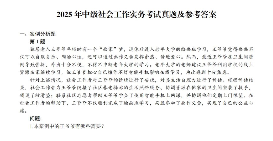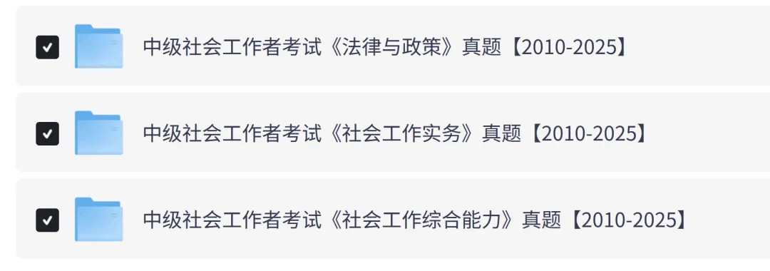 2026年级社会工作者考试将于5月23日举行大鱼精心整理了涵盖2010-2025年的中级社会工作者历年真题及答案解析,包含《社会工作实务》、《社会工作综合能力》和《法律与政策》三科真题,高清PDF电子版,可打印,方便大家随时下载学习。