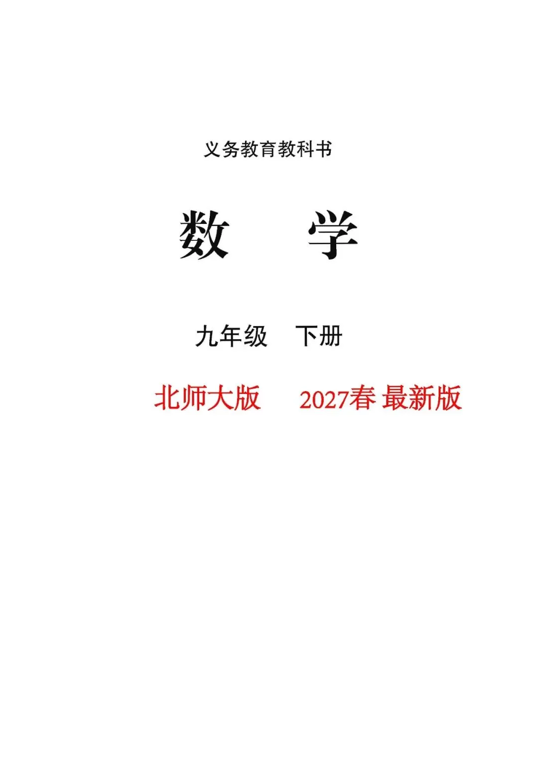 北师版最新版九年级下册课本数学(2027春季版),文末下载最新版教材