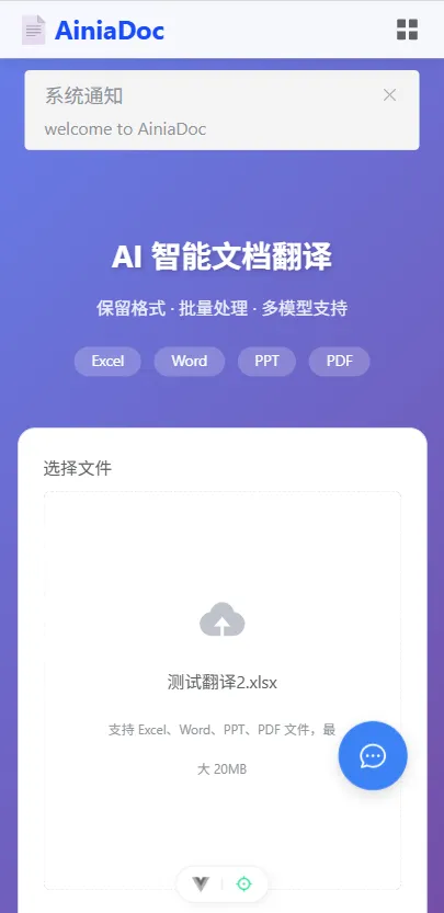 AI翻译,直接在手机使用大模型翻译办公文档格式保留直接在手机使用大模型翻译办公文档地址:doc.weiyoun.com [1]可以点击阅读原文或者在公众号菜单使用参考资料[1] doc.weiyoun.com: https://doc.weiyoun.com/