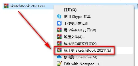 1.鼠标右键解压到“SketchBook 2021”
