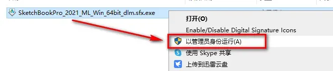 3.选中SketchBookPro_2021_ML_Win_64bit_dlm.sfx,鼠标右键选择“以管理员身份运行” ![]() 4.选择解压路径,点击“确定” ![]() 5.点击“安装” ![]() 6.选择我接受,点击“下一步” ![]() 7.选择软件安装路径,点击“安装” ![]() 8.软件正在安装,请耐心等待 ![]() 9.点击右上角的“×”关闭 ![]() 10.双击打开【Crack】文件夹