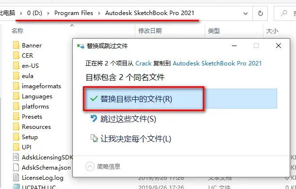 11.复制破解文件 ![]() 12.粘贴到软件安装路径下(第7步设置的路径),点击“替换目标中的文件”