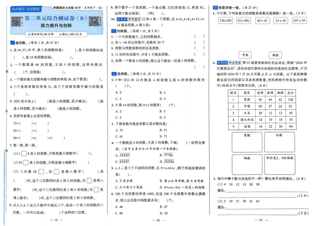 部分试卷及答案预览