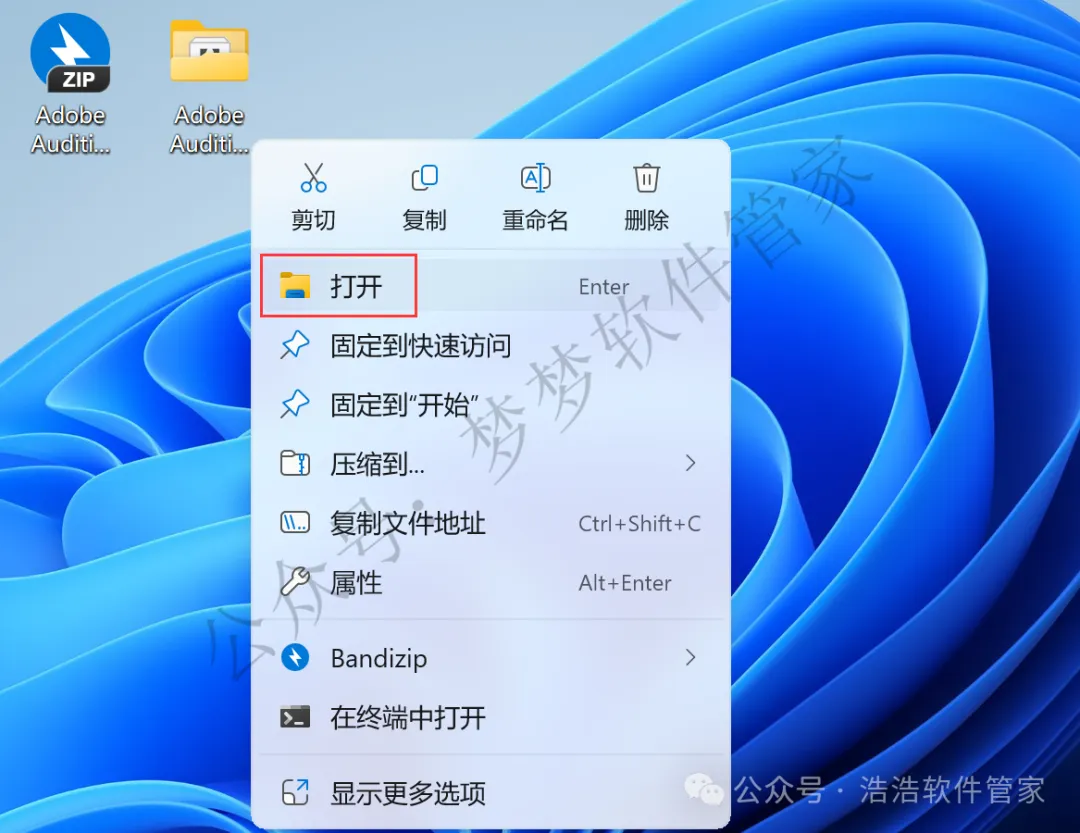 8、右键桌面上的【Adobe Audition 2026软件图标】,点击【打开】