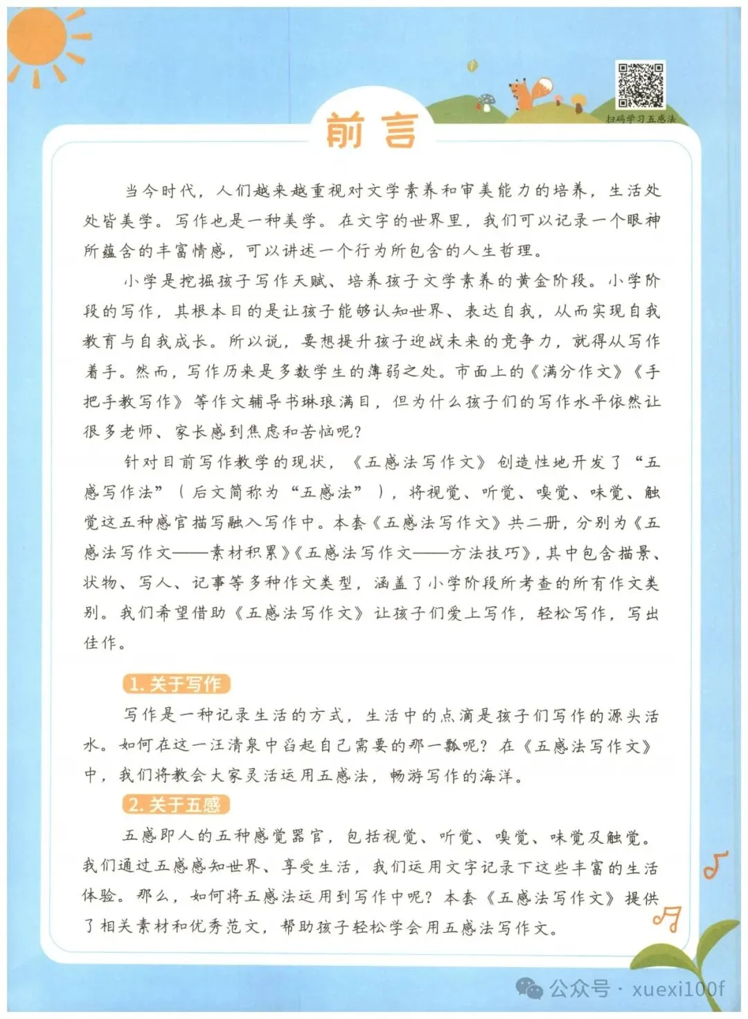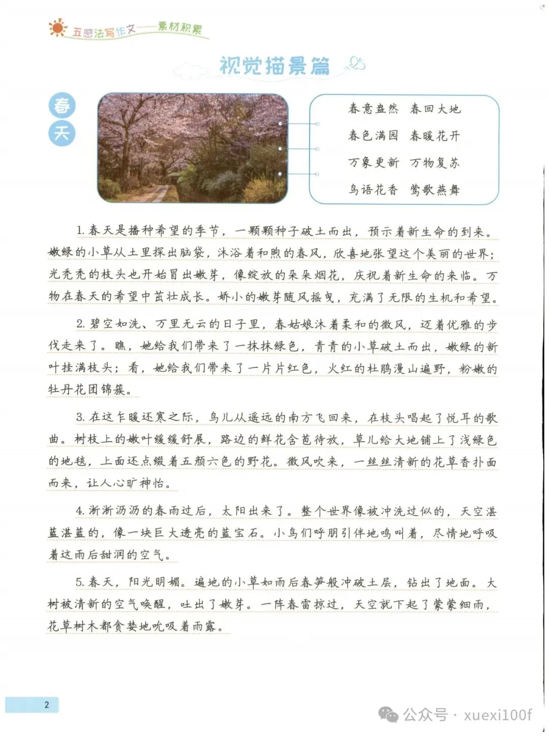 五感法是一种通过描述人的五种感官——视觉、听觉、嗅觉、触觉、味觉来写作的方法,旨在增强写作的感染力和立体感。以下是五感法的具体技巧和示例: