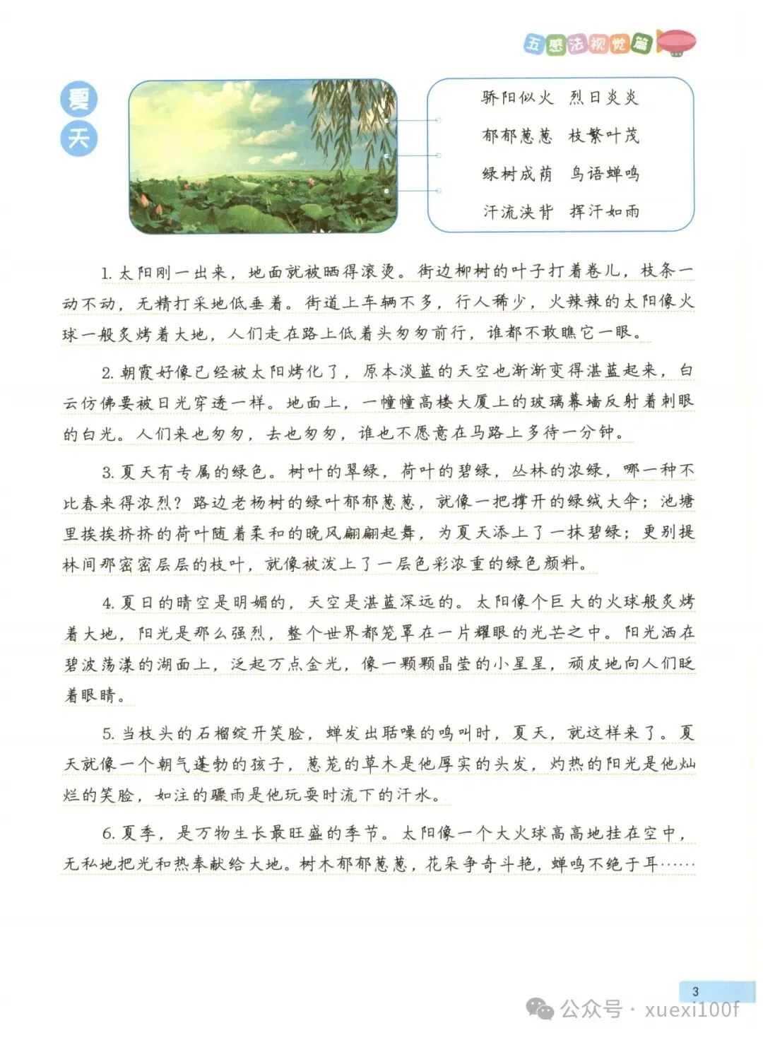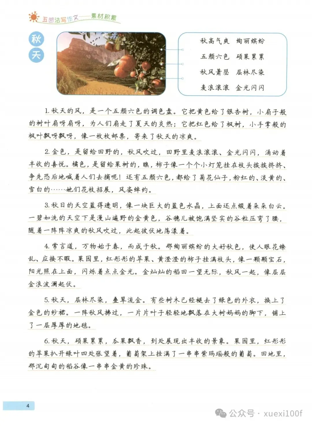 :观察颜色、形状、动态(如光影变化、物体移动)。使用比喻或拟人手法(如“夕阳像打翻的橘子汽水”)。注意细节(如叶脉的纹路、花瓣边缘的卷曲)。 - 示例