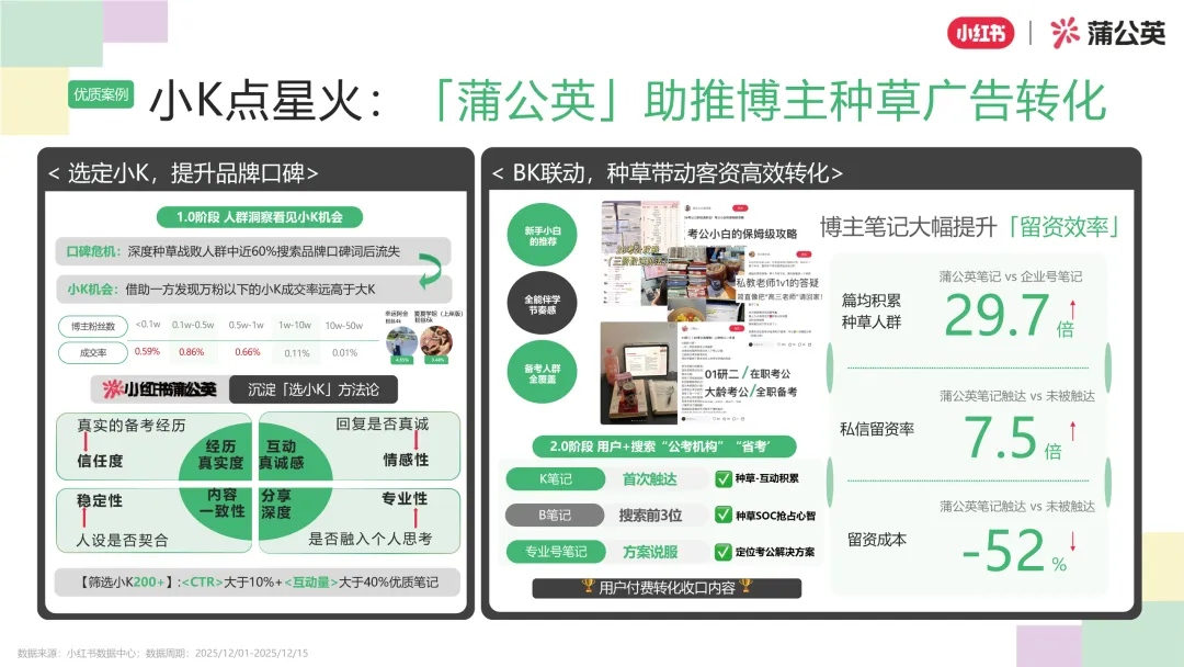 2026小红书教育培训行业KFS通案(可下载)依托蒲公英平台150万+商业作者、90%UGC原生内容的生态优势,通过KFS标准化打法(选博主、做内容、做投放),搭配广告联动、后链路转化能力,让教培品牌实现TI流转率11.6%、CTR13.9%、留资成本降40%的确定性增长,同时提供定制合作、批量商单、种收联动等全产品矩阵,解决博主匹配、流量效率、内容转化等5大痛点。